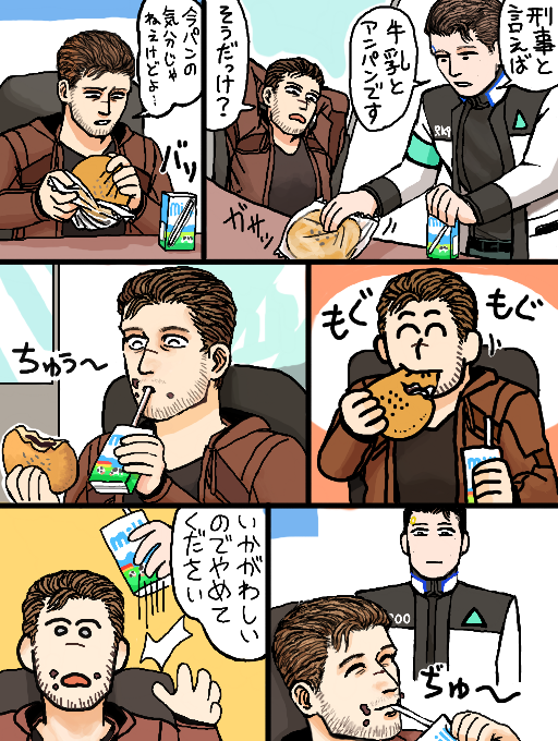 2コマめで、いってるコトとは、ウラハラに、おいしそうに たべてますね♪アンパンが、たべたくなってくる…。