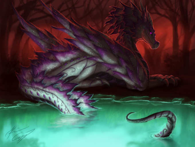 Ooooh this picture is gorgeous and spooky~ I noticed the reflection detail right away and I really liked it, even if it wasn't coming out how you envisioned, I thought it was a nice touch X3 I love all the sparkly little scales on Azamuku as well, you did a really great job on the evil pretty boy~