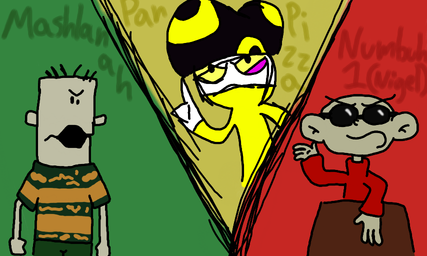 Some dumb fanart of some trial scene with Mashlanah, Numbuh 1 (Nigel) and Pan Pizza. I think it's something to do with "Dolts, Dimwits and Oafs" being a ripoff of C:KND...
