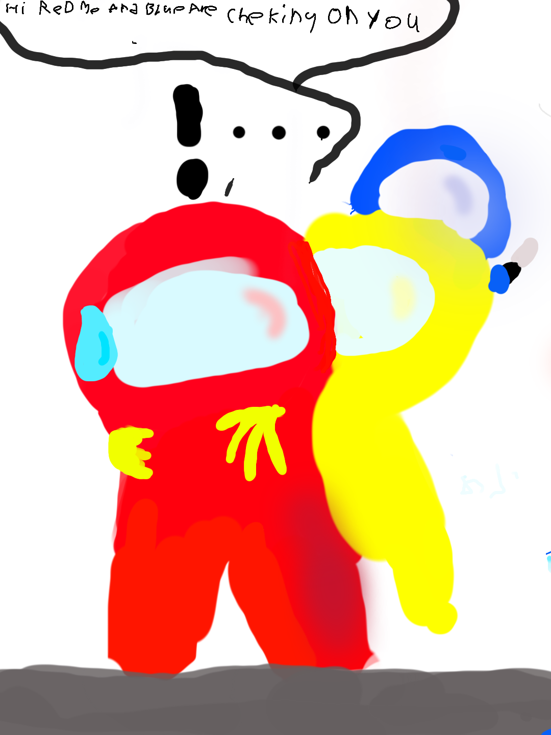 "Hi red, me and blue are checking on you!" - Yellow