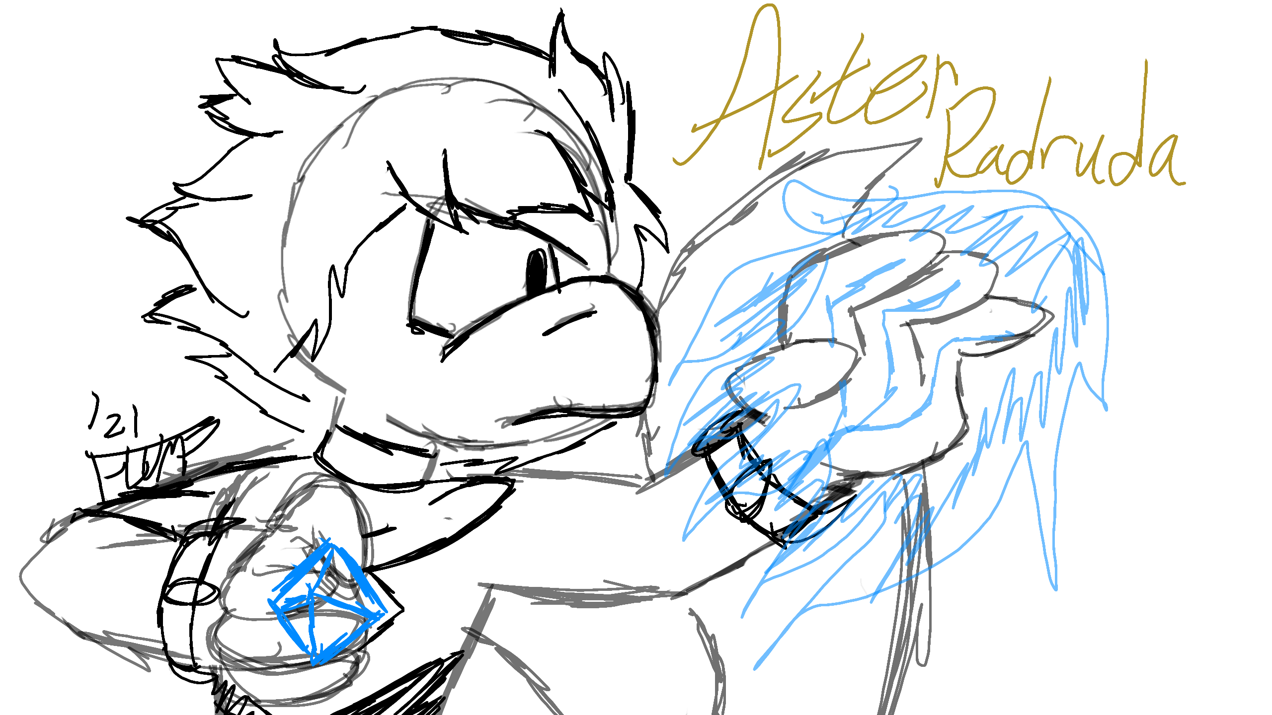 Same idea as the last post, just a little sketch of one of my favorite OCs, this one being Aster Radruda, from an anthromorphic reptilian species. Same as Riley, expect more detailed drawings of him later.
