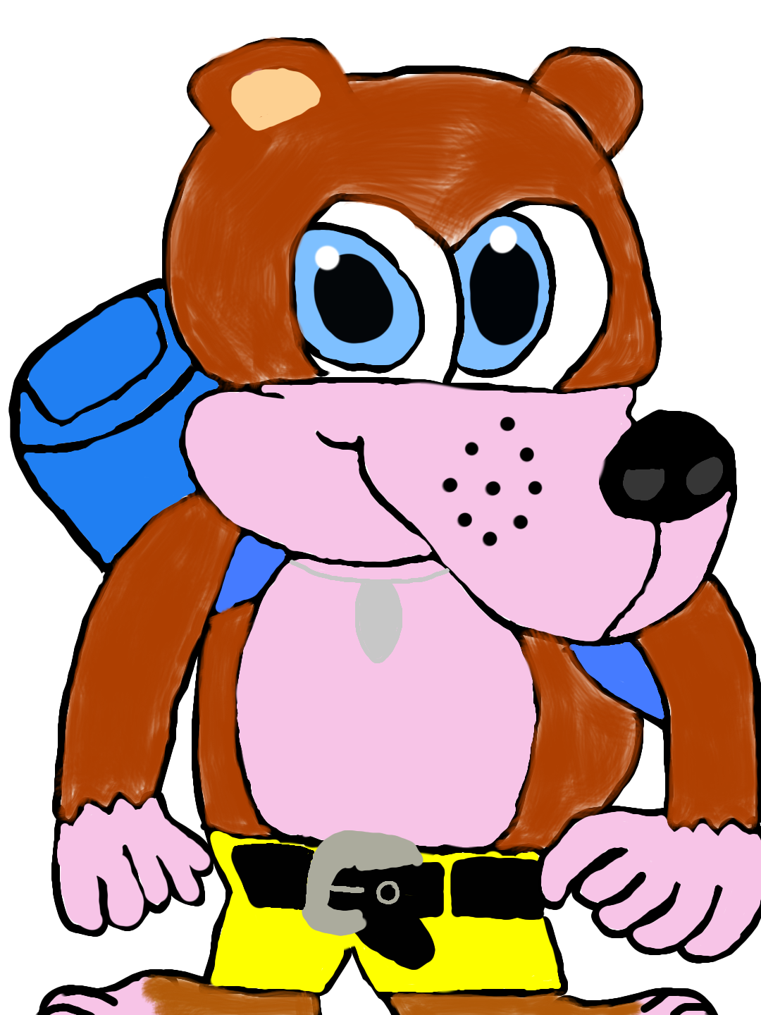 I drew this picture of Banjo from Banjo Kazooie because it's one of my favourite N64 games. Banjo, Kazooie, Bottles, Tootie and Brentilda are my favourite characters in the game. I love the music to all the levels and most of all I love collecting all the notes, jigsaw pieces and the Jinjos in each level.