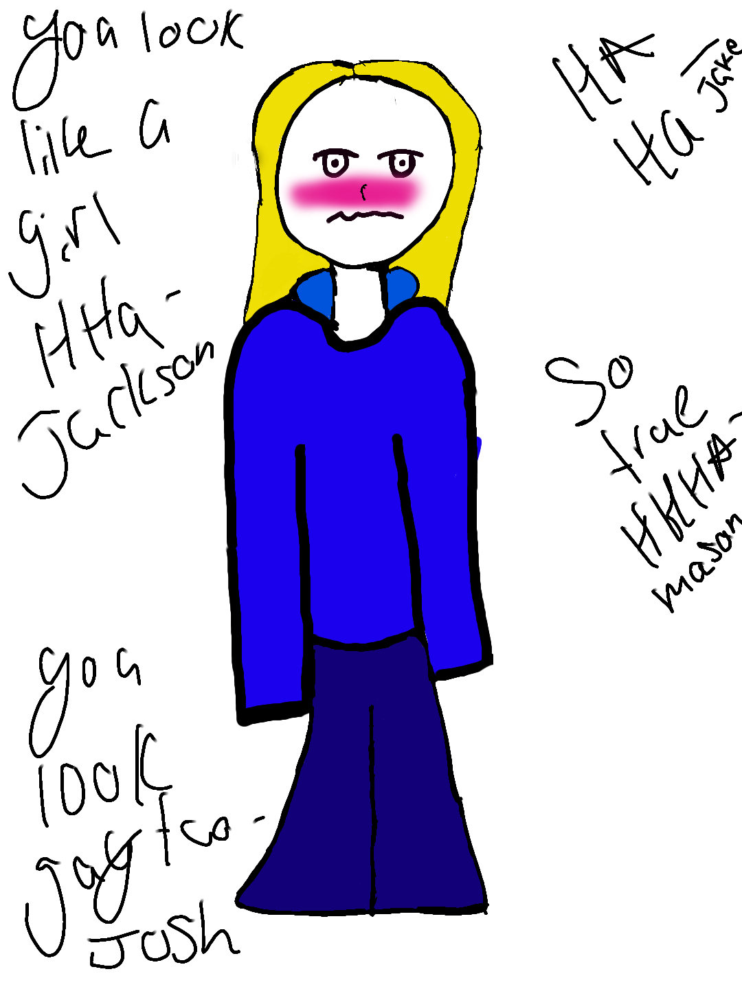 Max gets made fun of bc of his hair and the other boys are bullyng him bc of it and is being called gay too.