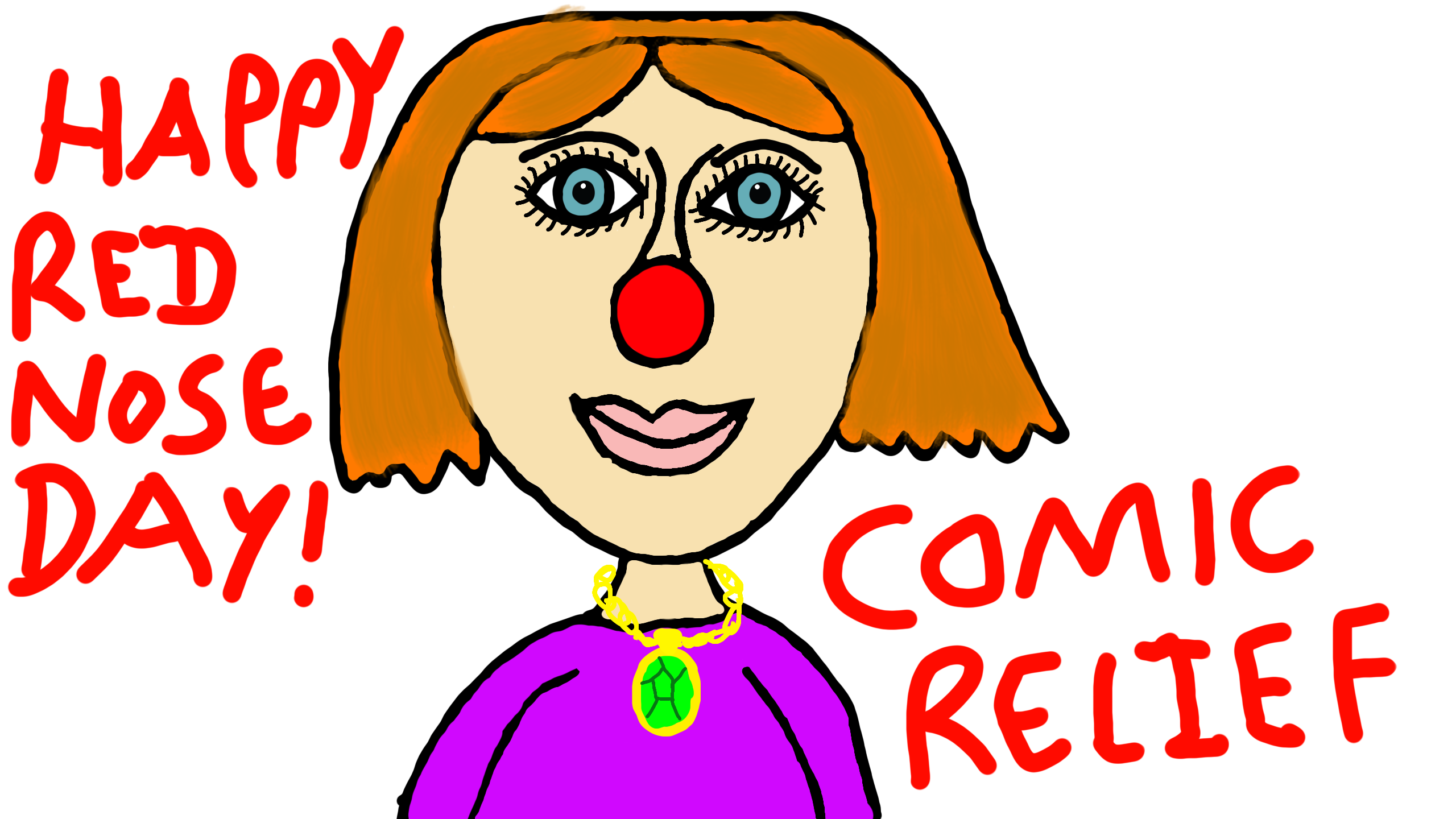 I drew this picture of me wearing a Red nose for Comic Relief. We pray for the people in Ukraine and hope some of them are safe and have managed to Survive! We also pray and hope that the dogs with their owners out in Ukraine are trying to keep safe, warm and well. Hope a lot of donations go to them! tonight! Happy Red Nose Day everyone!
