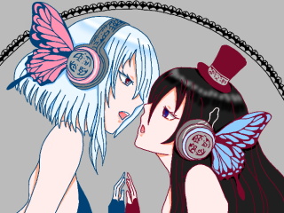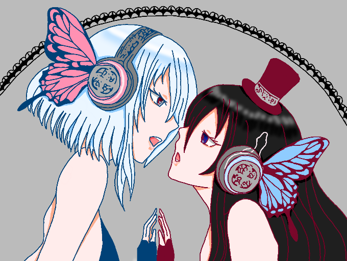 magnetのイラストのルカさんとミクさんをオリキャラのルナ(ショートのこ)とルア(ロングのこ)にしてみました!イメージカラーはふだん、ルナがあかでルアがあお なんですけど、こんかいはいれかえてみました!ぜんぜんいわかんないね…w これじゃあ、いれかえたいみないじゃん!?wなのであとからヘッドフォンのいろをいれかえてみました~。どうでしょう?あ!あと、これはもとのイラストをトレスしました。かってにおかりしてしまってすみません…
