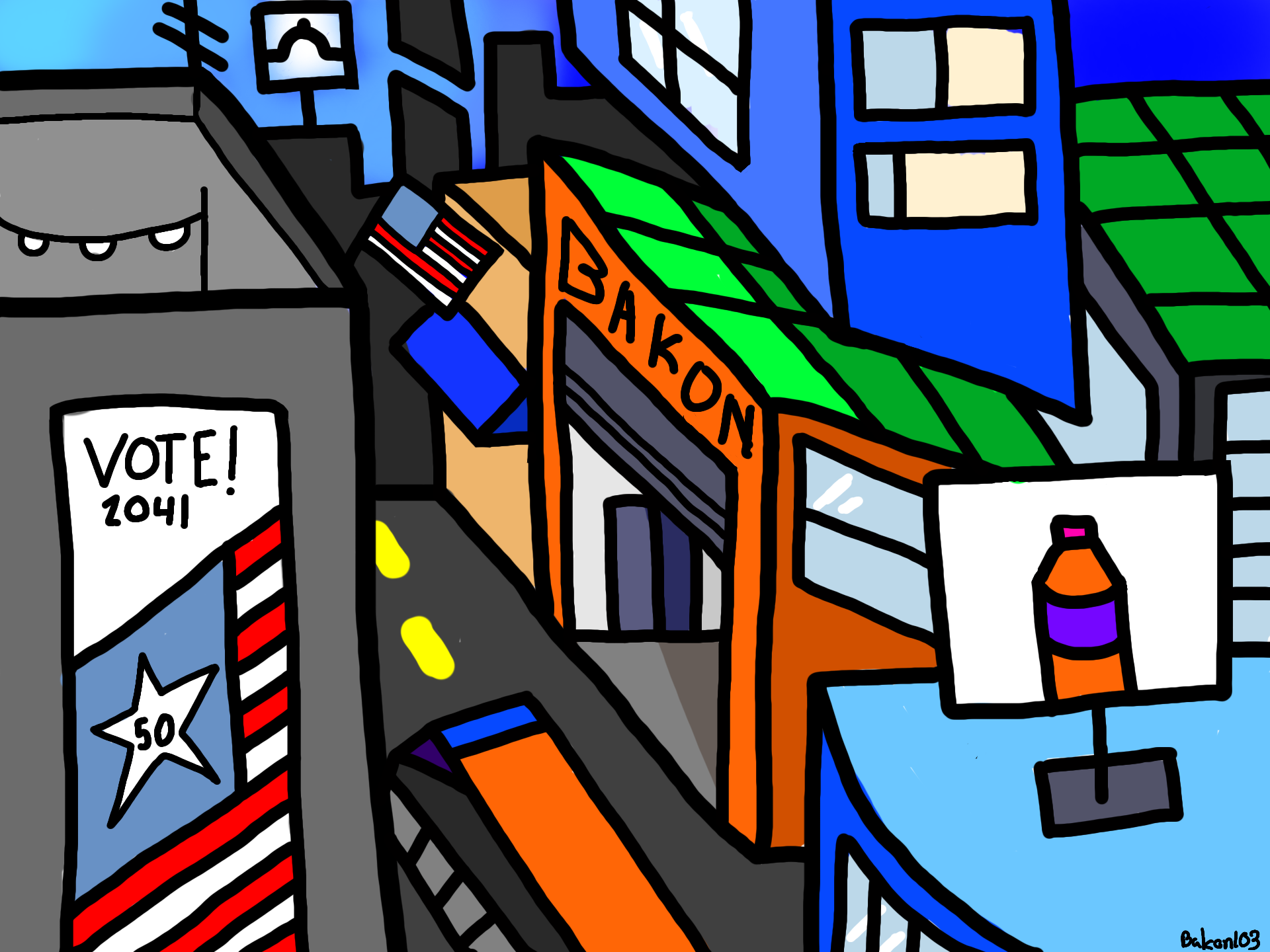 I tried to envision what a city might look like in 2041. I named one of the buildings after my username!!