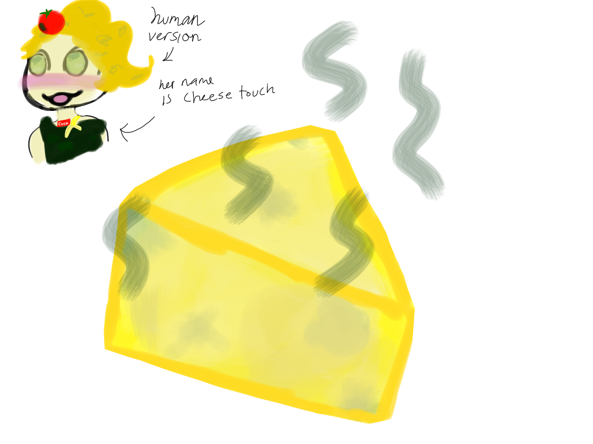 heres yor request @IdioticLemon and an oc because a plain peice of mouldy cheese was too easy so yeah XD idk anyway she can shapeshift into cheese, feel free to draw her cuz shes your