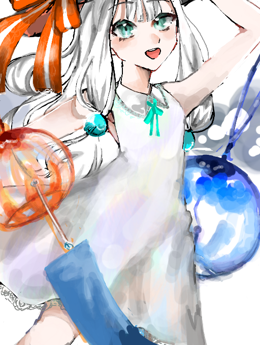コメント失礼しますとっても好きです...!!白の服でもシワの感じやすこし色がついていたり、風鈴が手前にあってキラリンッみたいな感じになっていて上手すぎです、、ファンです あとリボンの影や女の子の目が水晶みたいになっている所も綺麗で本当に好きです、、!!