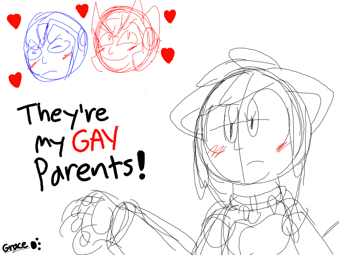 They're robots! Who care! They're my gay parents! Let me be happy! I still can't draw humans or robots! WTH!?! >:'U-Grace #Vent #Robots