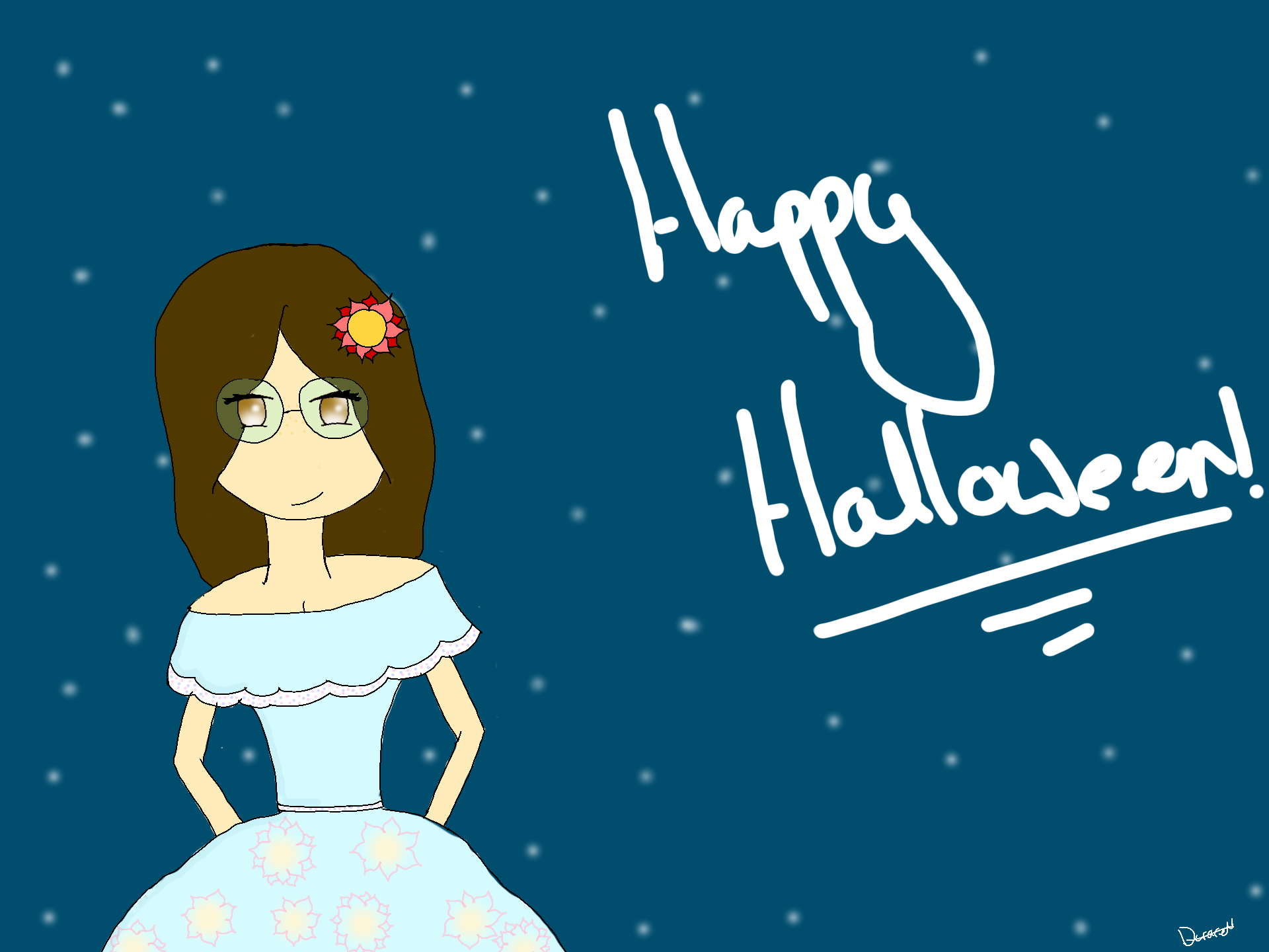 I attempted to draw me in a day of the dead dress (looks more like a princess dress :/ ), i never wear dresses let alone draw them so thats why it looks weird and doesn't look like a dotd dress :/