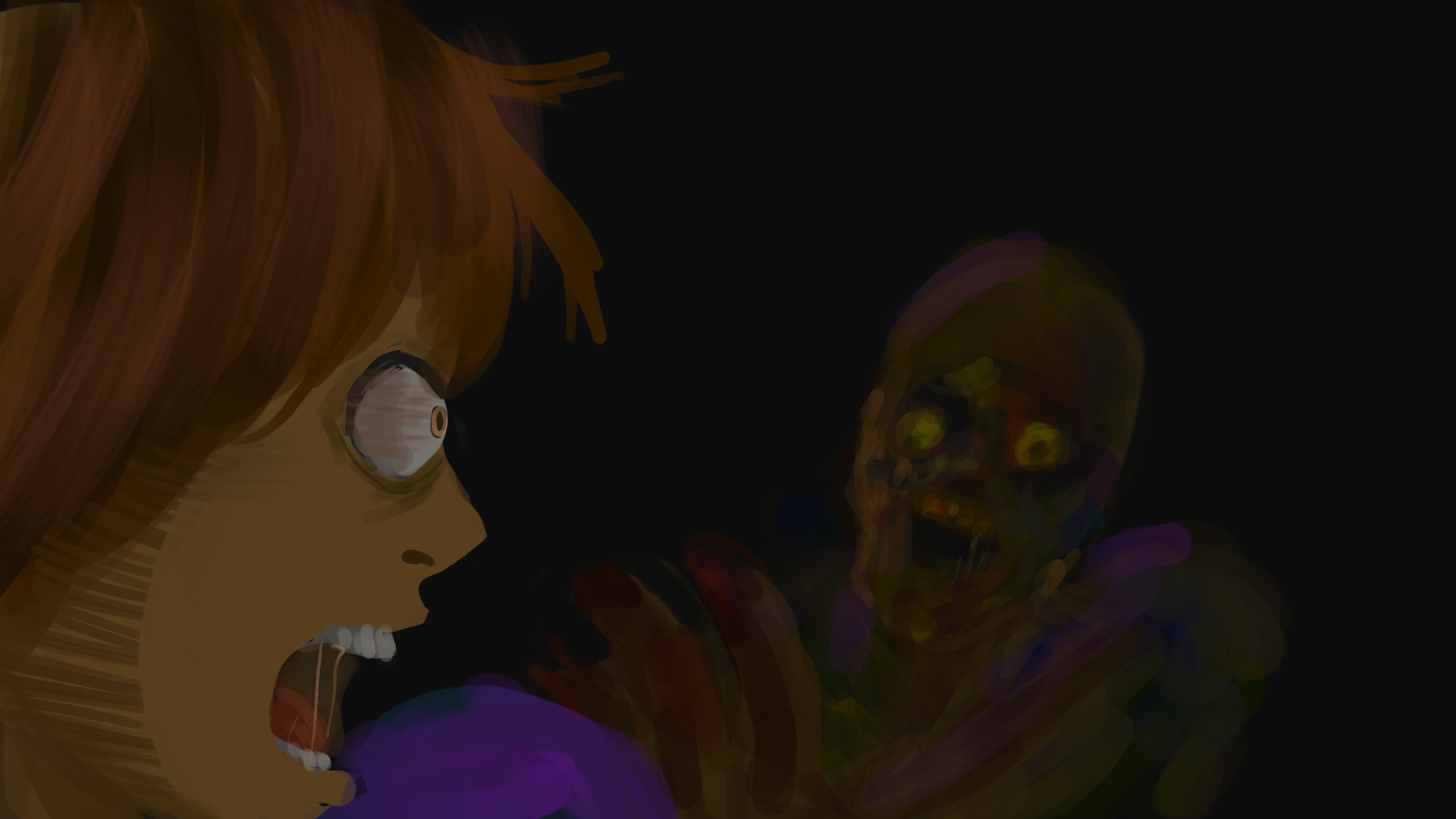 YEEES! こちら!クエストで投票しましたの私!飛び出そうな眼球をよく覚えています ゾンビ側が暗いのもうまいぃ! や ったぁ れ?ガブ られ ら