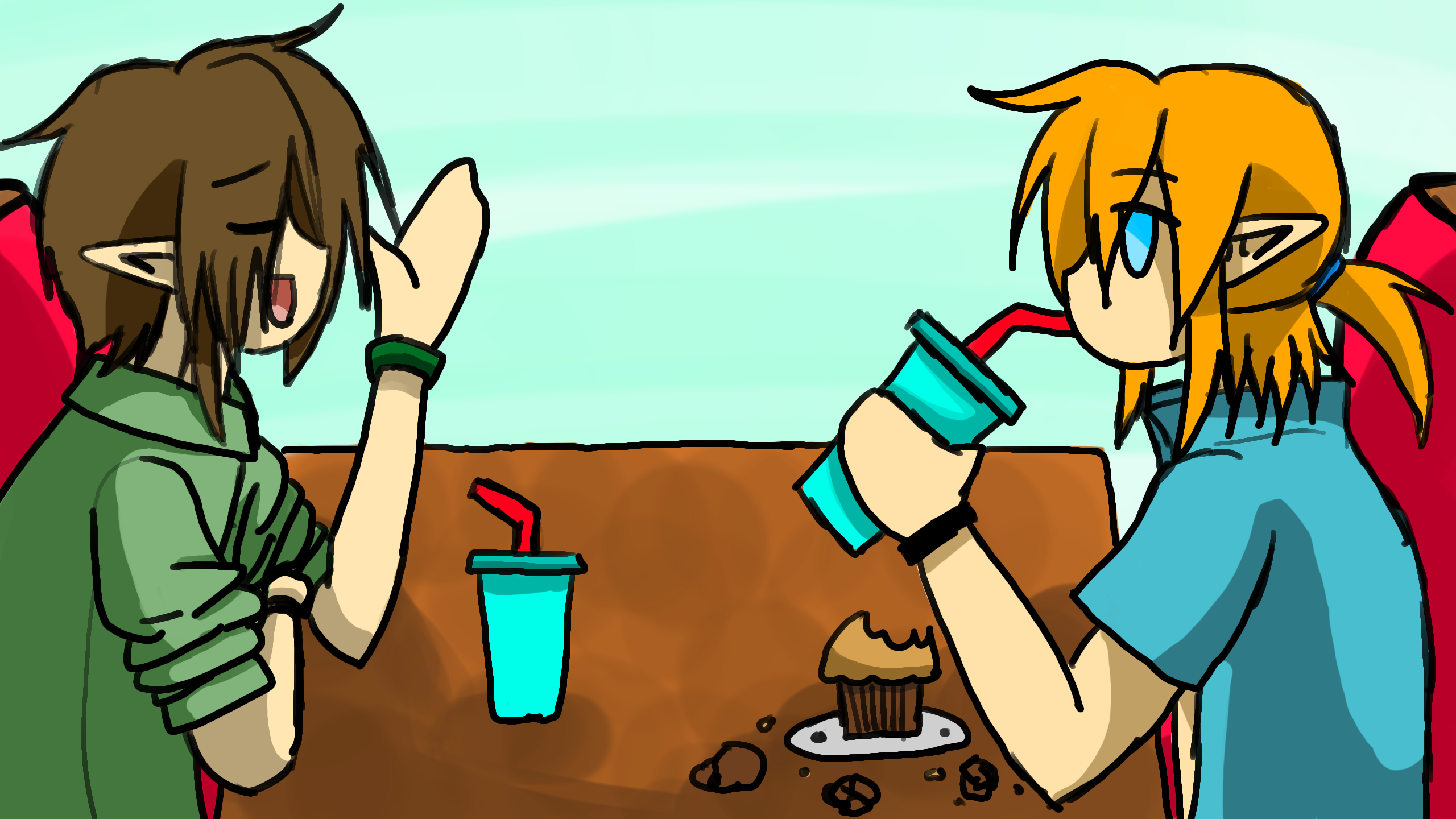 Twilight and Wild in a modern restaurant Wild: (He's gonna pay for all my muffins...right?) Twilight: *has no idea that Wild is broke* #zelda #link #amesfanart