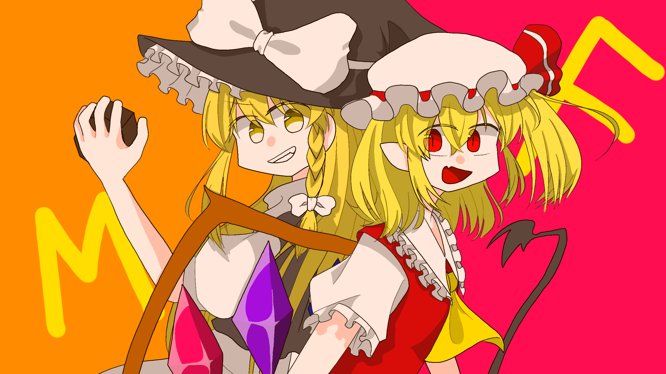 リクエストありがとうございます!! @katorea さん※魔理紗ちゃんが持っているのはミニ八卦炉でフランちゃんが持っているのはレーヴァテインです、ミニ八卦炉の裏側わからなかったんですごめんなさい