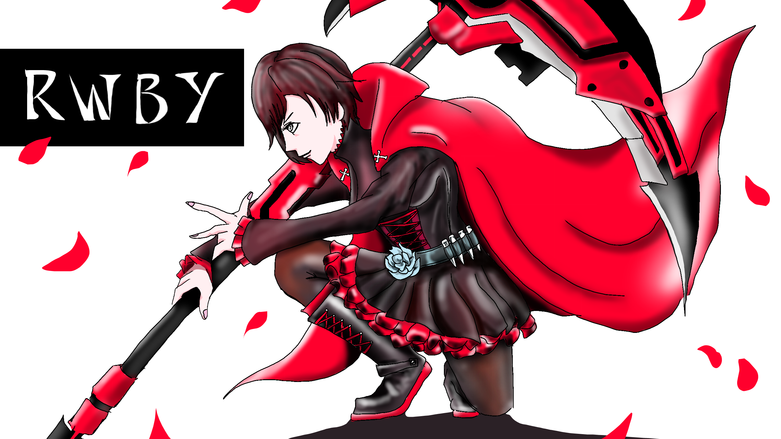 ワイスはアニメ塗り。ルビーは、ソフトブラシで塗りました。ソナーペンがないので、塗りの強弱の微調整は、ソフトブラシが一番塗りやすいです。だけど、細い線や、細かい部分が塗りにくいです。