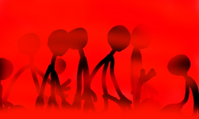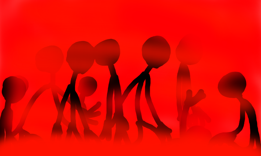 A bunch of Stickmen get lost in a large foggy cloud of red mist...
