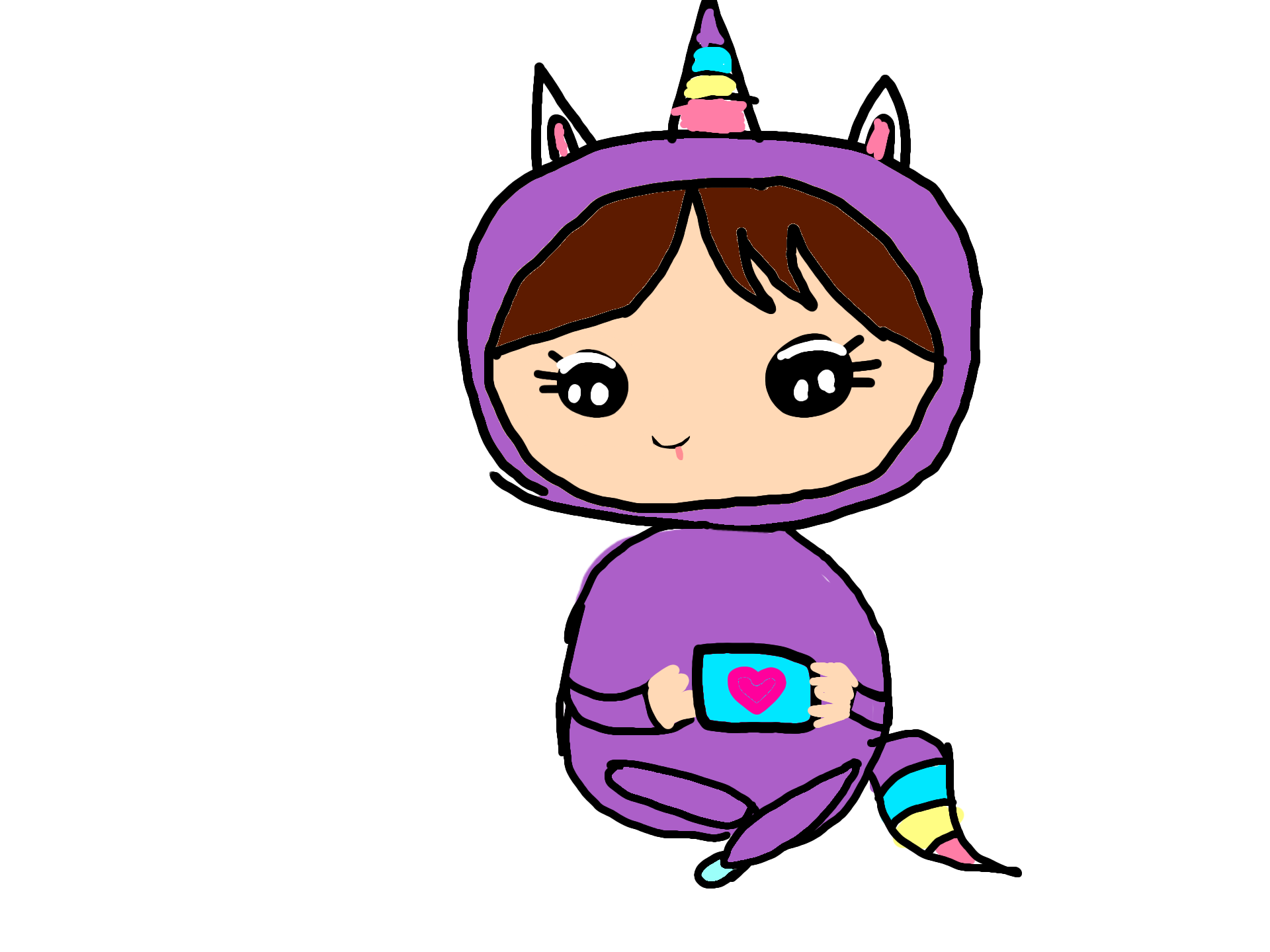 petite fille portant une combinaison de licorne á un jeu vidéo