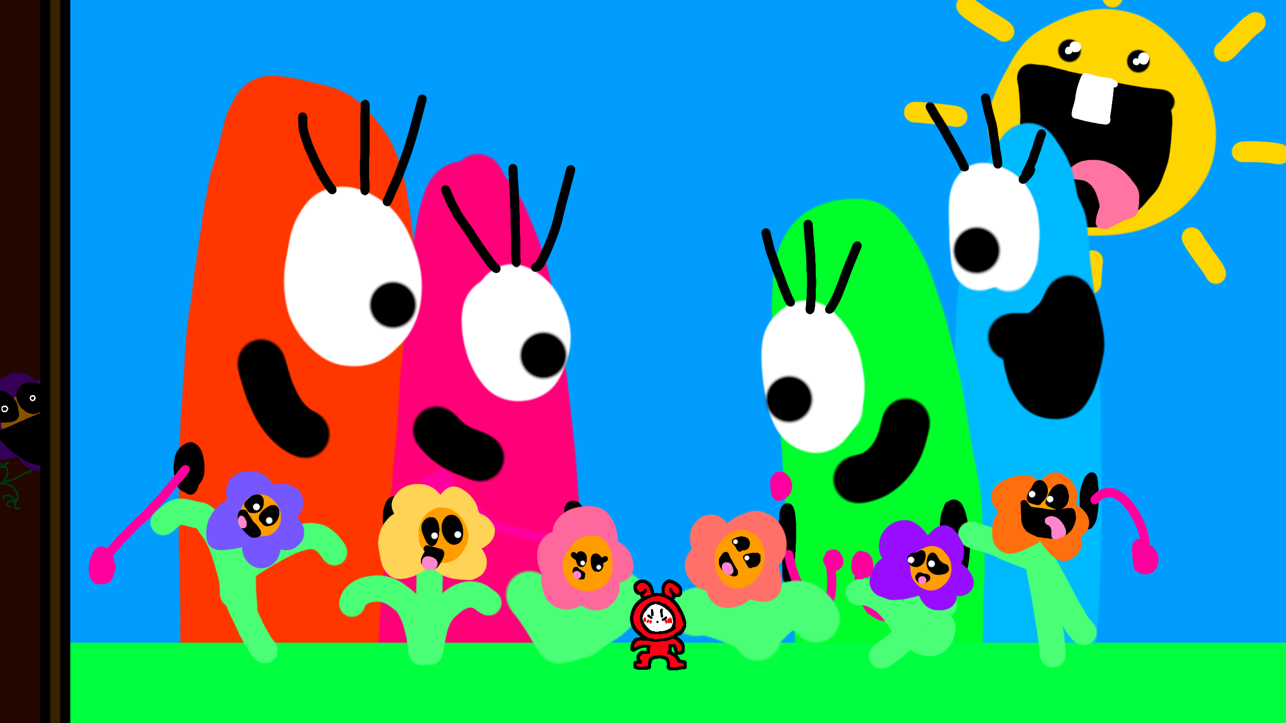 "Well... ...In 2003, they released us!" - Sunshine Flower the orange flower