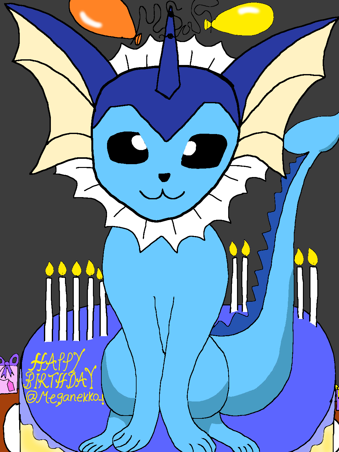 I don't know many of the other Characters from Pokemon except Pikachu and Eevee, But I used a reference from Google to draw Vaporeon on a cake for you! I hope your having a Wonderful Day!