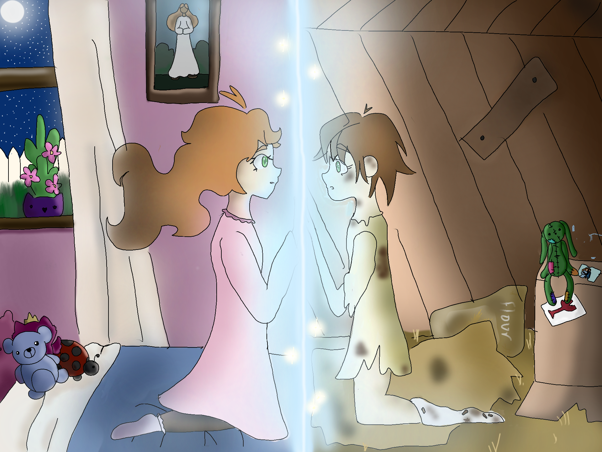 Ellie woke up to a soft blue glow coming from the end of her bed. When she loooked up there was a girl that was dirty and lived n a small box looking thing. She had the same eyes as Emily looking right back at her. She looked farmiliar to Emily and then Emily look up at a photo of her ow decesed grandmother. Suddely she knew. "Helen?" Emily asked. The girl nodded. Emily wanted to hug her the weird blue mist blocked her. Emily began to cry. Helen smiled and reached out to touch the mist.