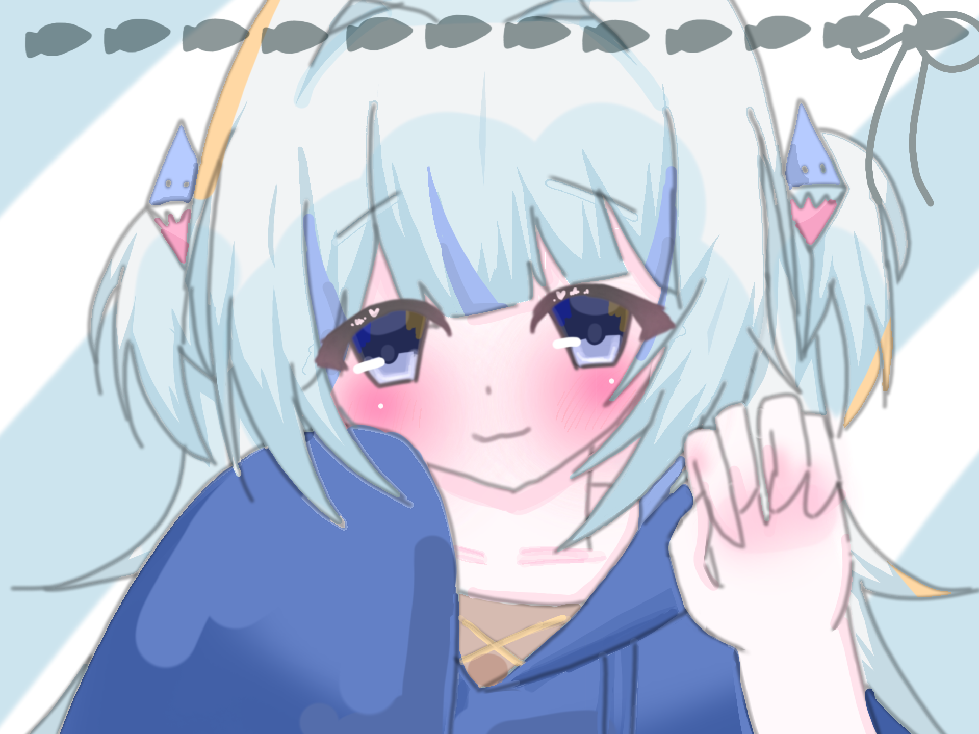 @56483 めんしょん失礼します、!!めっつっっちゃ待たせてすみません、、出来ました~!でざみすあったら切腹しま~~~<33りくありがとうです:kissing_cat: ♡♡そしてお熱あるんですね!?お大事に、! #がうるぐら #ホロライブ