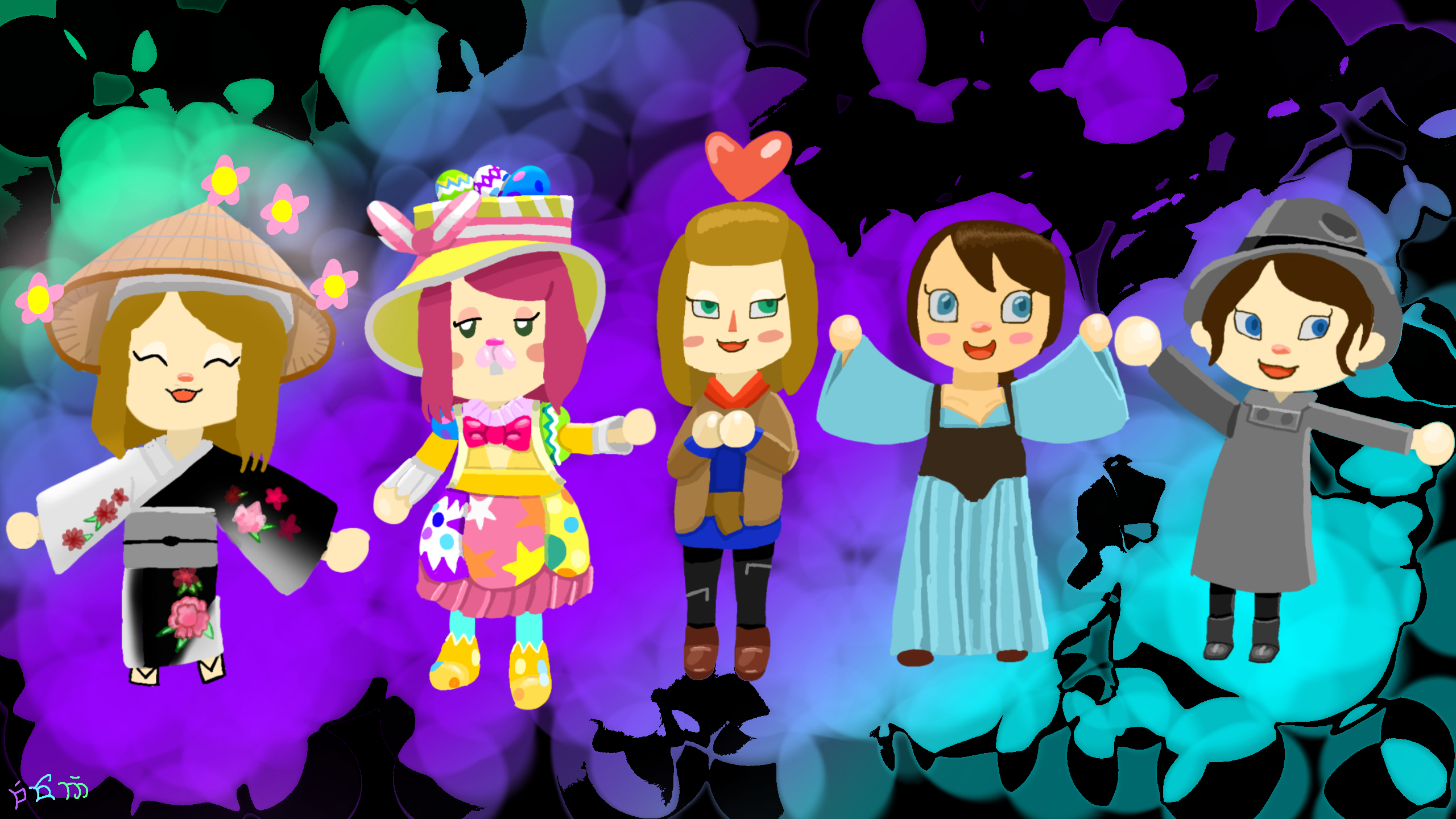 #chibi #neon #cute #animalcrossing #acnh #bunny #detective #hat #merlin #princess