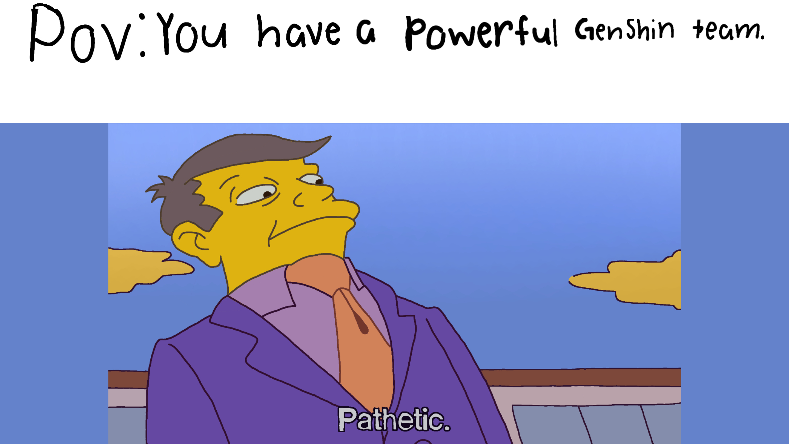 Pov:You have a very powerful genshin team #simpsons #meme #remixable #template #patheticmeme Credit to @coolweirdo #remix