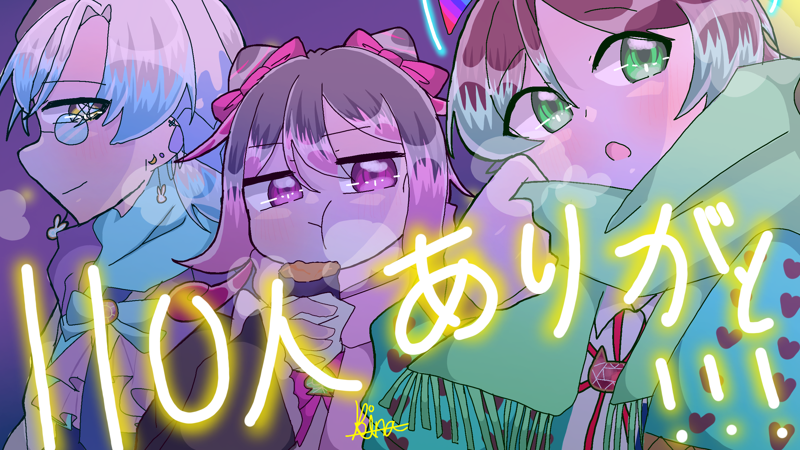 ピャアアア!110人おめでとうございます!横顔とか食い顔とか笑顔とか素晴らしいイラストが描けて本当に尊敬してます。これからも頑張ってください!