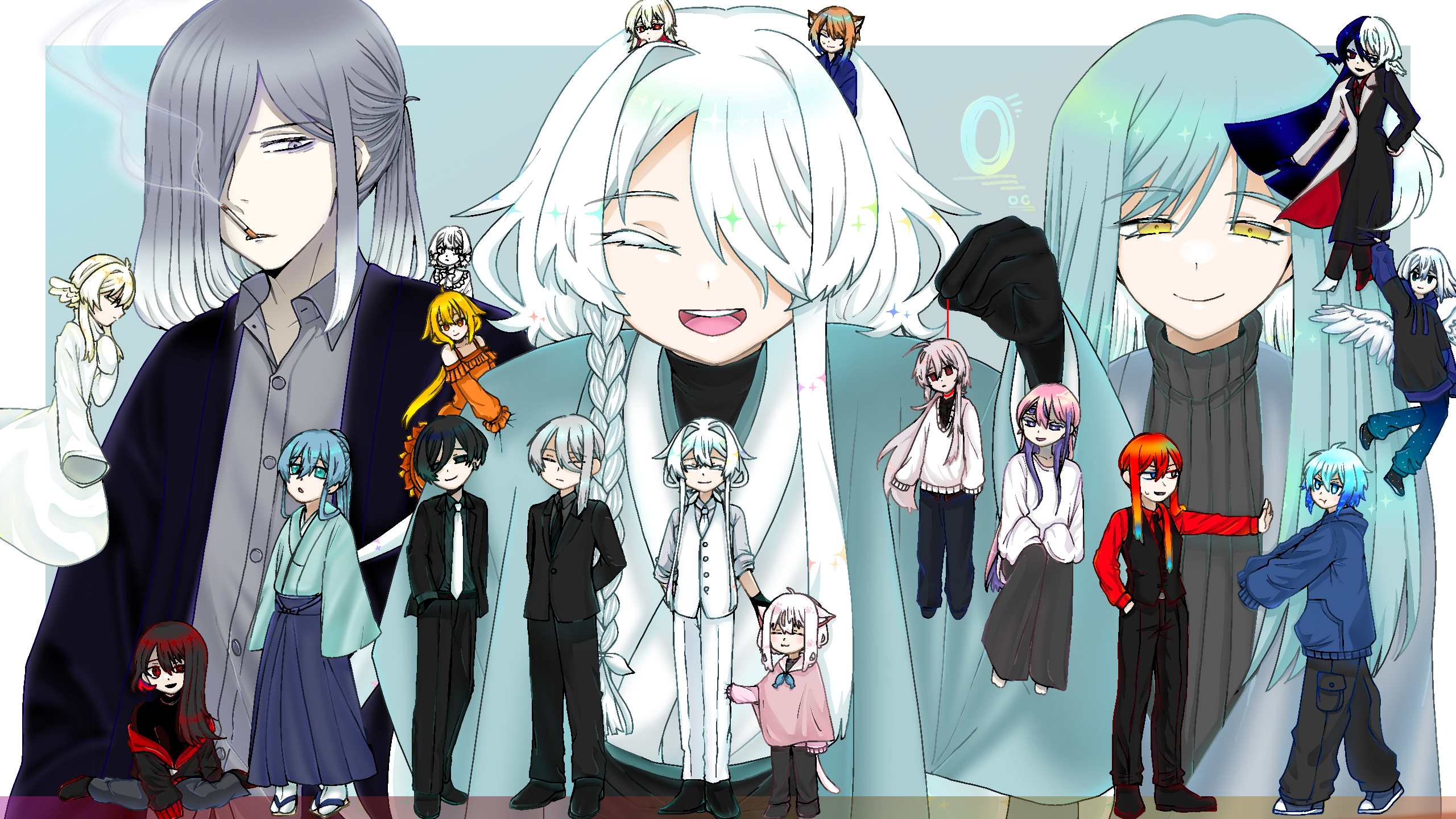 うわあああ!20時間お絵かきお疲れ様です!!!!めっちゃみんなかわいくてかっこいいです!!!私は特に真ん中の白ロングの子と猫耳のこが好きです、!!左下の赤黒い子は勘違いでしたらごめんなさいなんですけどまえあかで零さんが投稿していた赤黒い子の目がきらんってなってる絵(語彙力どした)がすきでした!!