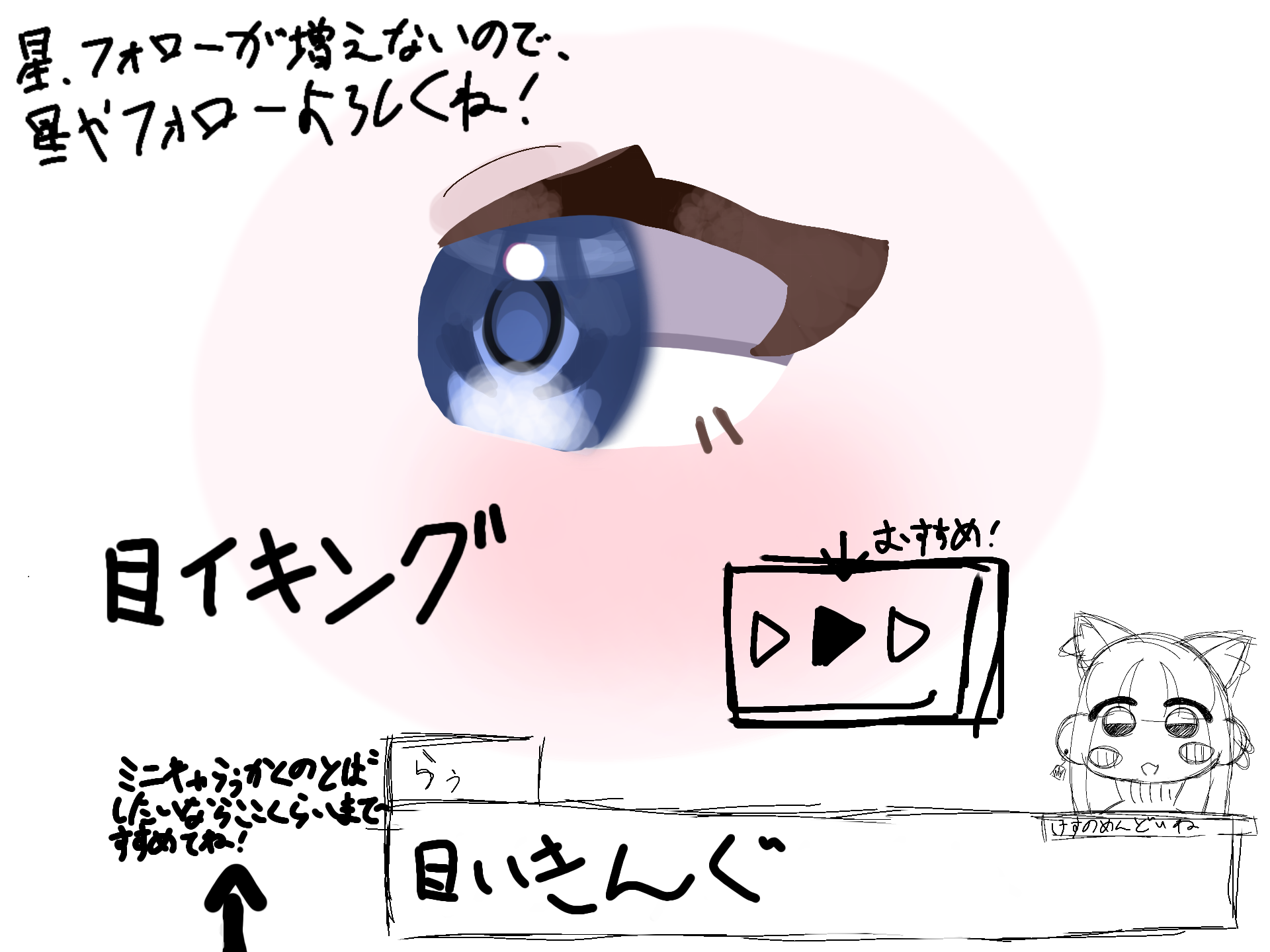 こんにちは!!猫羽らぅだよ!!今回はーーーーー!!目イキングだよ!!みんながやってるの見てやりたくなっちゃった(えへへ)ぷるんぷるんできらきらのおめめにしてみたよ!!これ書き終えるまでに三回くらいバグって泣く(泣)みんなも目イキングしてみてはぁ???自タグ #らぅのあとりえ | #らぅの本気絵 お借りしたタグ #目 | #めいきんぐ