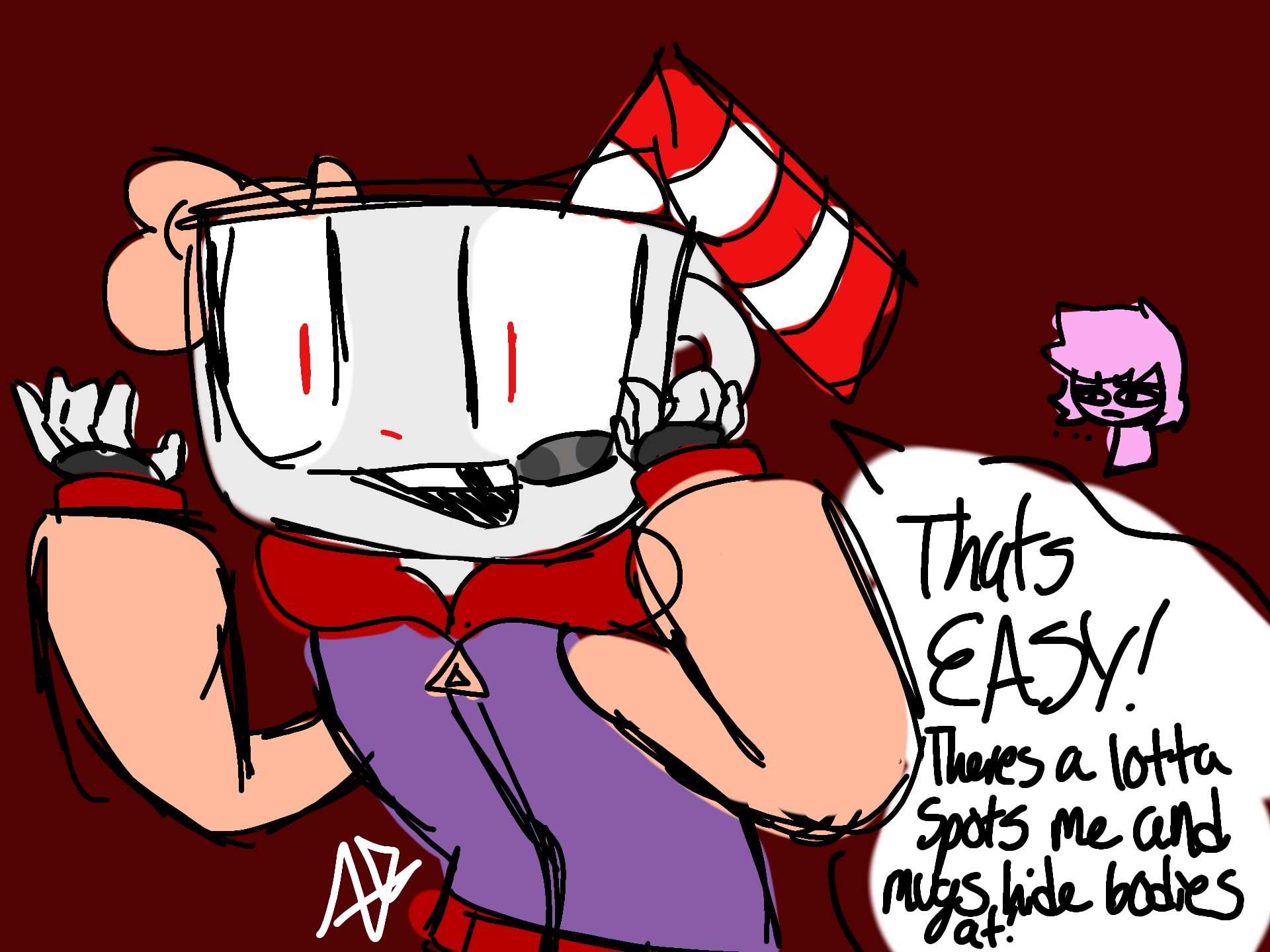 Cuphead: thats EASY! Theres a lotta places me and mugs hide bodies at.