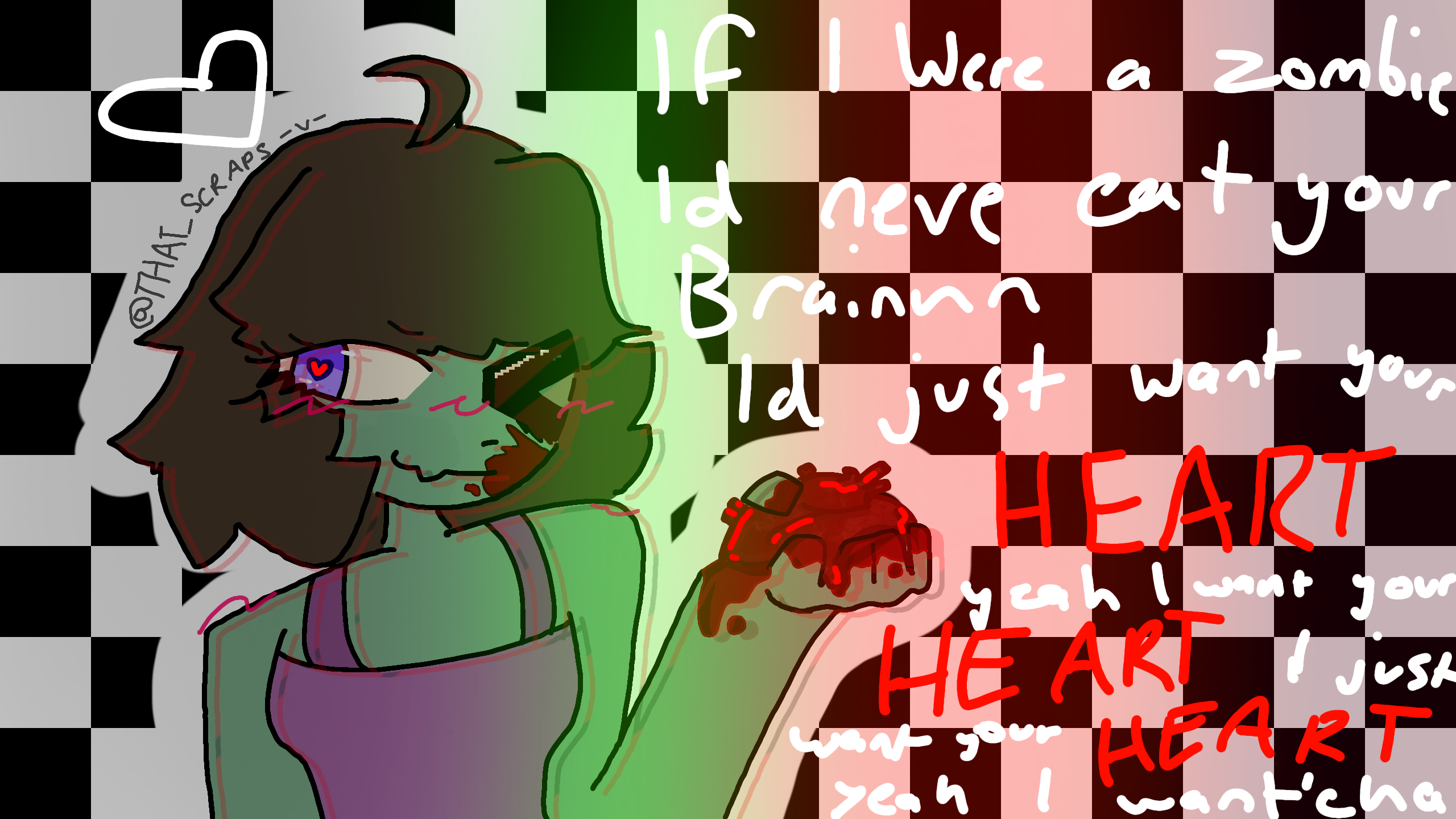 cuz if i were a zombie id never eat ur braaaiiinnn id just want ur yeah i want ur heart i just want ur heart i just OHHHHHH /lyr