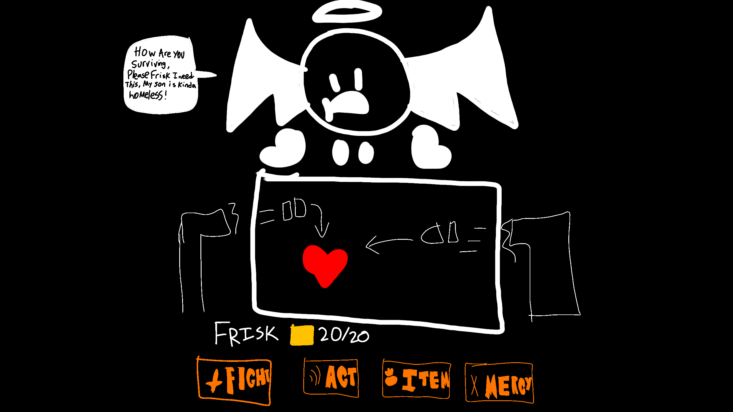 "How are you surviving, Please Frisk, I need this, my son is kinda homeless!"