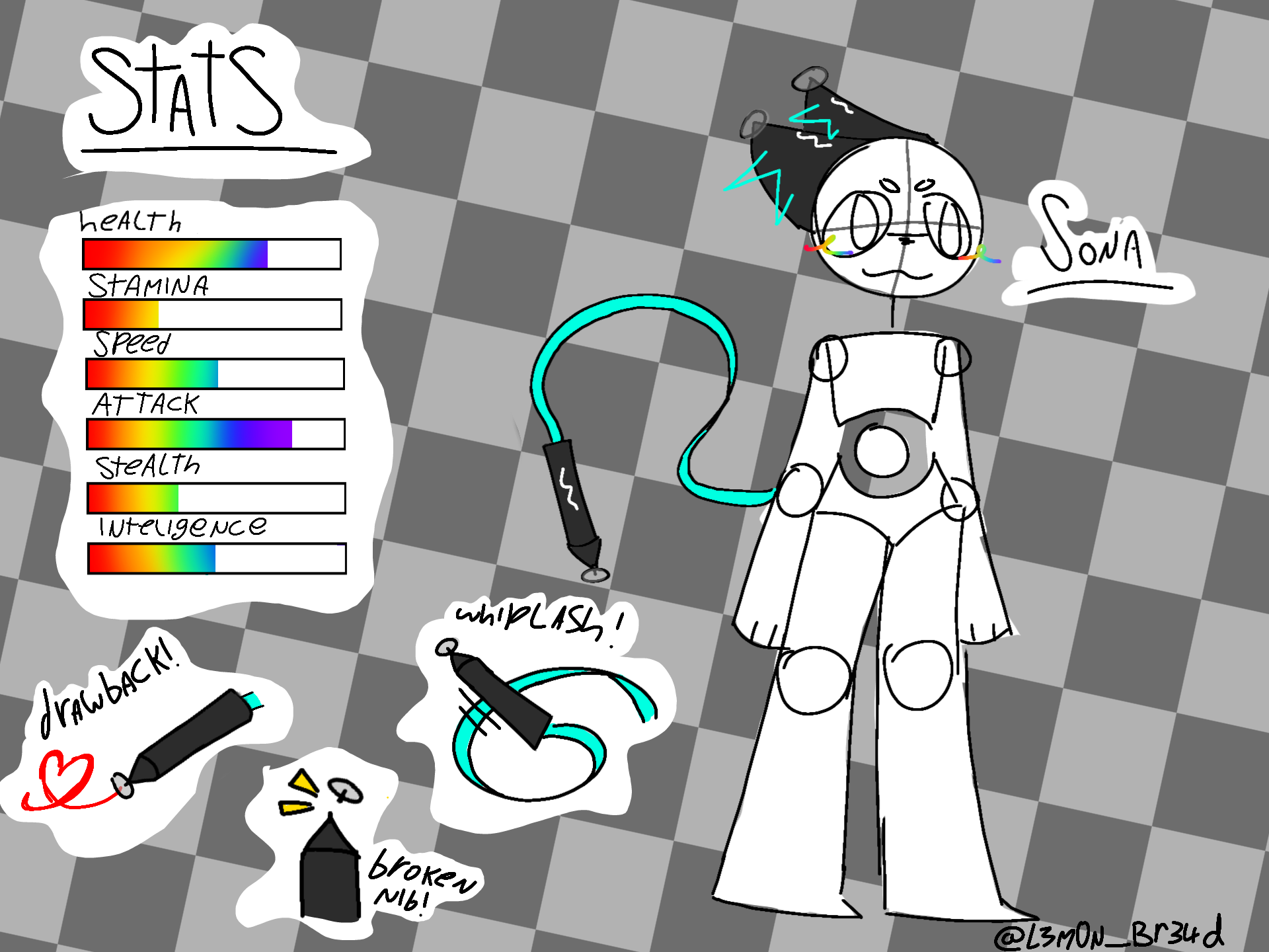 after using abilities to their fullest, the pen nib on Sona's tail will break and you are unable to use it until you find another