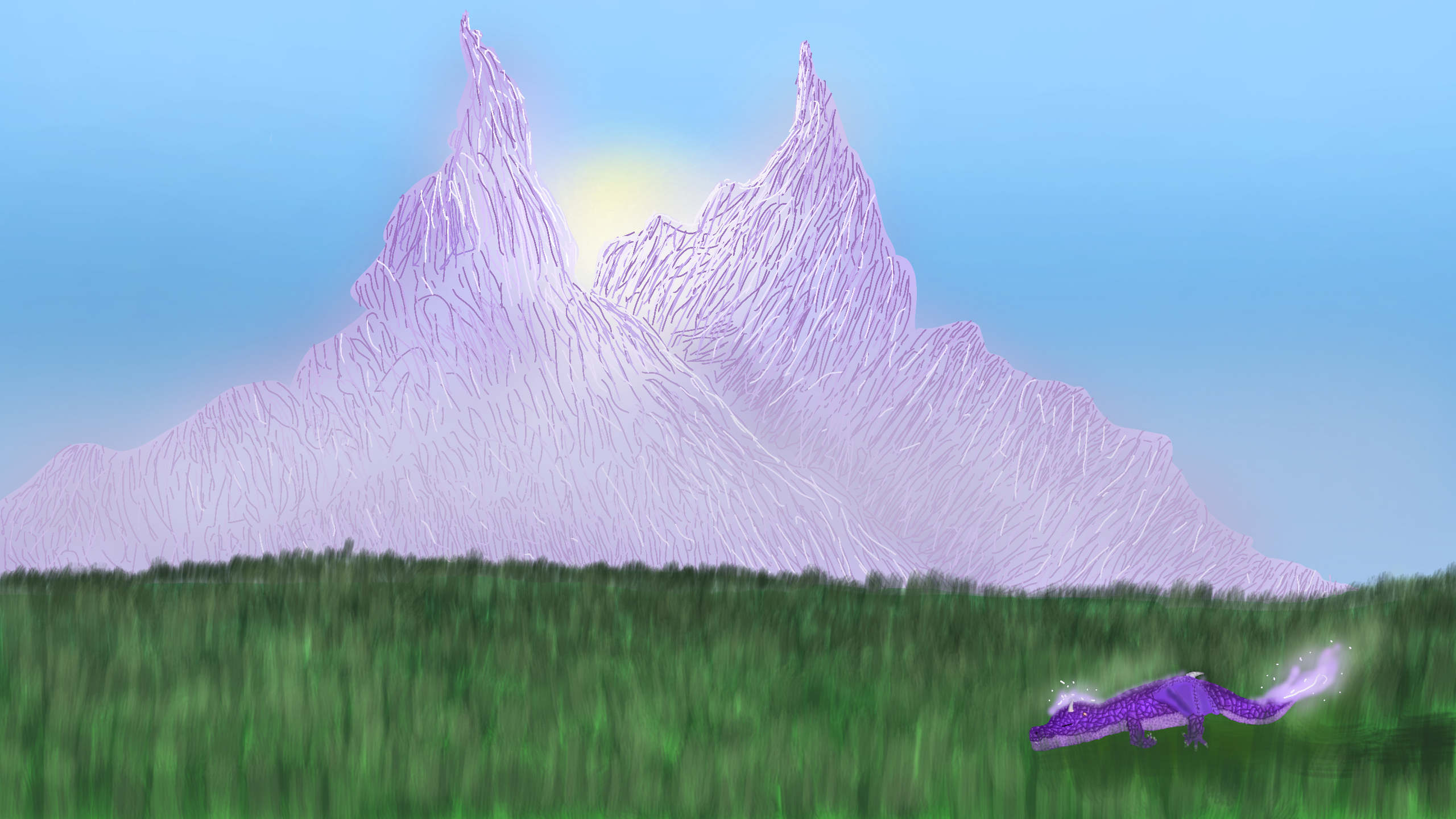 i just realized i Didn't give him scales in the first one so lets say they Didn't form yet. I really tried to fold the wing, and,i mean It's folded just not correctly. i also tried something new with the mountains. thank you!