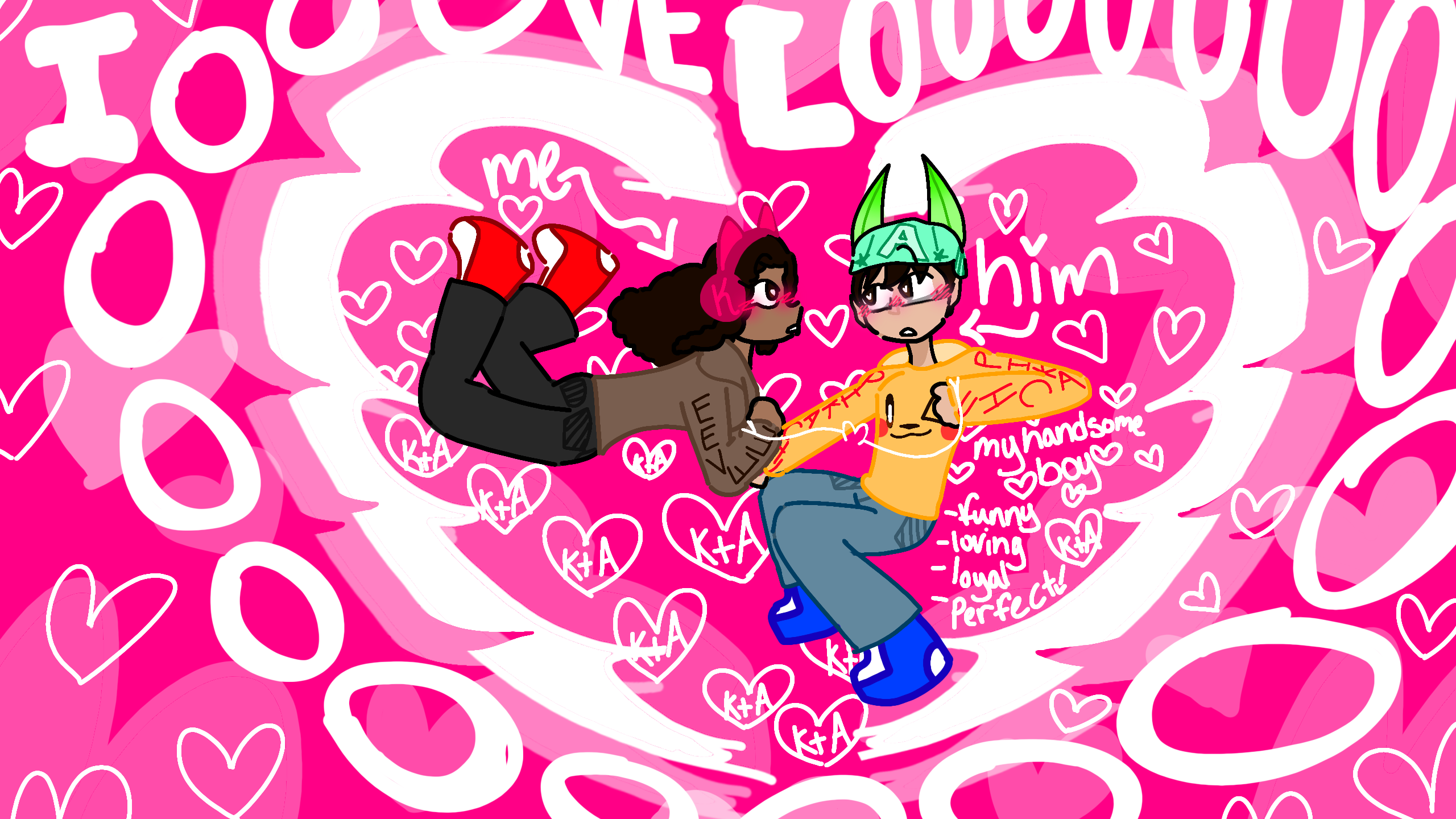 I love you more than words describe, your laughter echoes in my mind, your smile is a damn delight and i would fight anyone who dares tries- to hurt you around me. Your the only man i need i dont need prayer but im on my knees. Your my everything and so much more. You make my dreams come true. One day i hope we get married <3