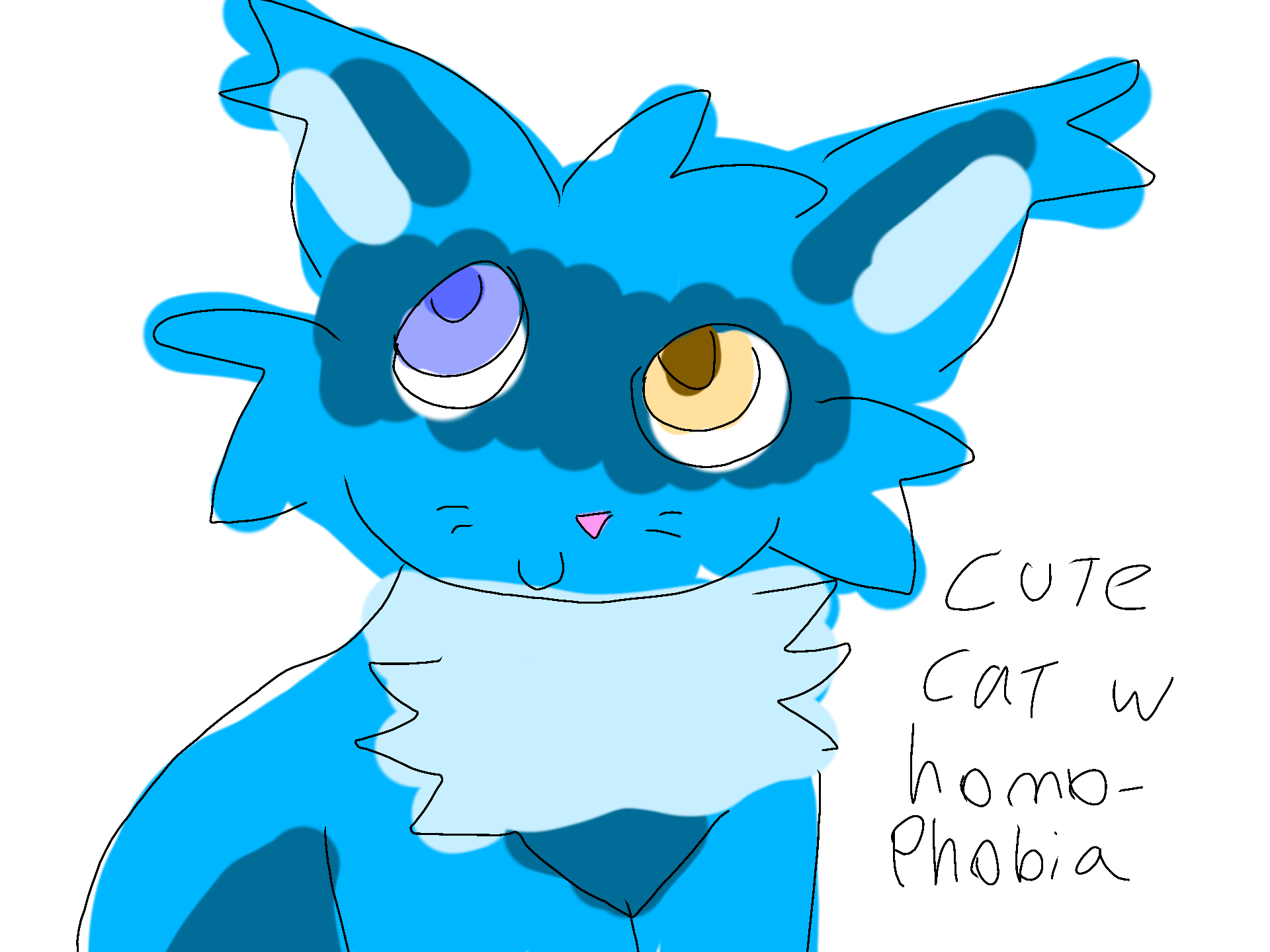 @legend0flink so basically the two different eye colors thing has a name and its sorta spelled like hom o phob ia and it was in this pic of a cat w two different eye colors so yeah i sound stupid