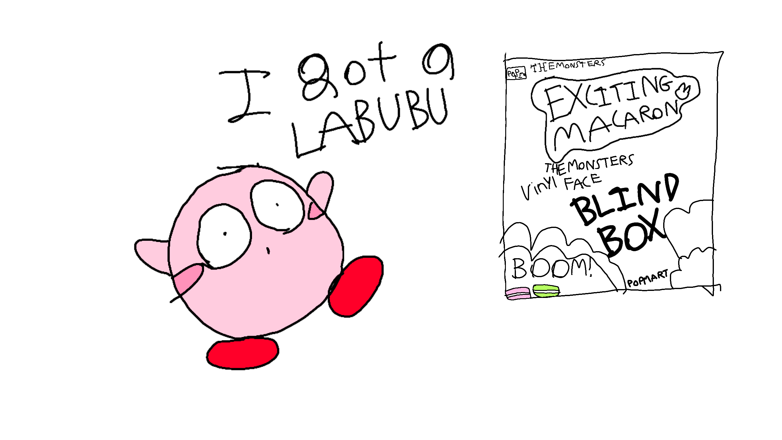 I got the exciting macaron labubu from my friend, i got the sea salt coconut labubu! yay!!!! :D also i drew this all by hand because i lost my stylus. ye. #labubu #excitingmacaron