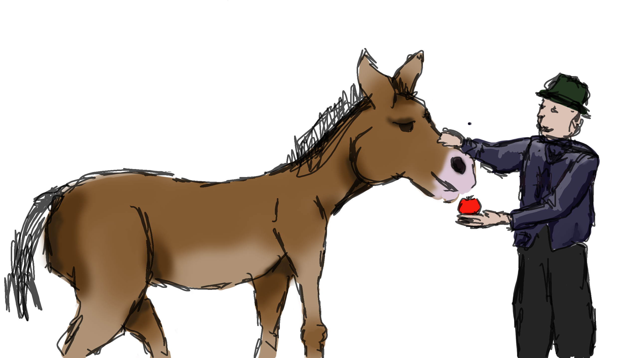 man feading a house