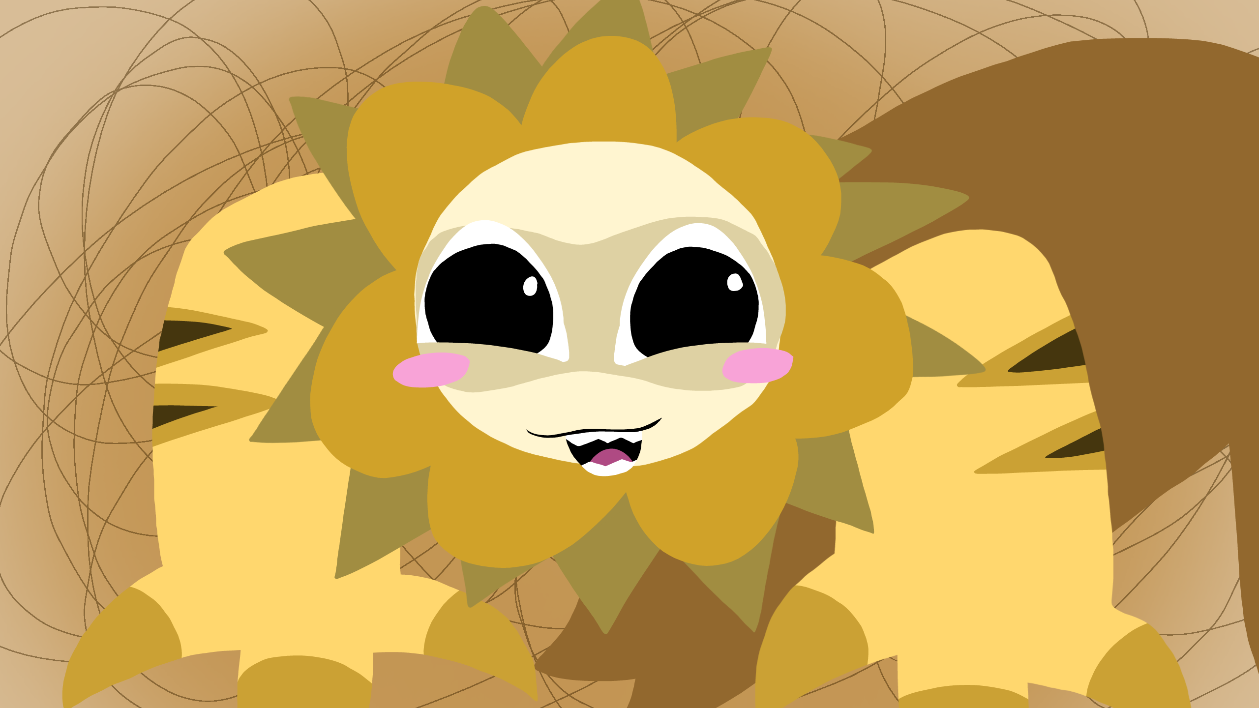 this is butter, and i have has this guy since like- july? somewhere around that time. hes a buttercup flower but uh yeah hes really chill... unless you be rude to him lol, he has a little sister, ill draw her later tho, shes a dandilion, and her name is lion lol.