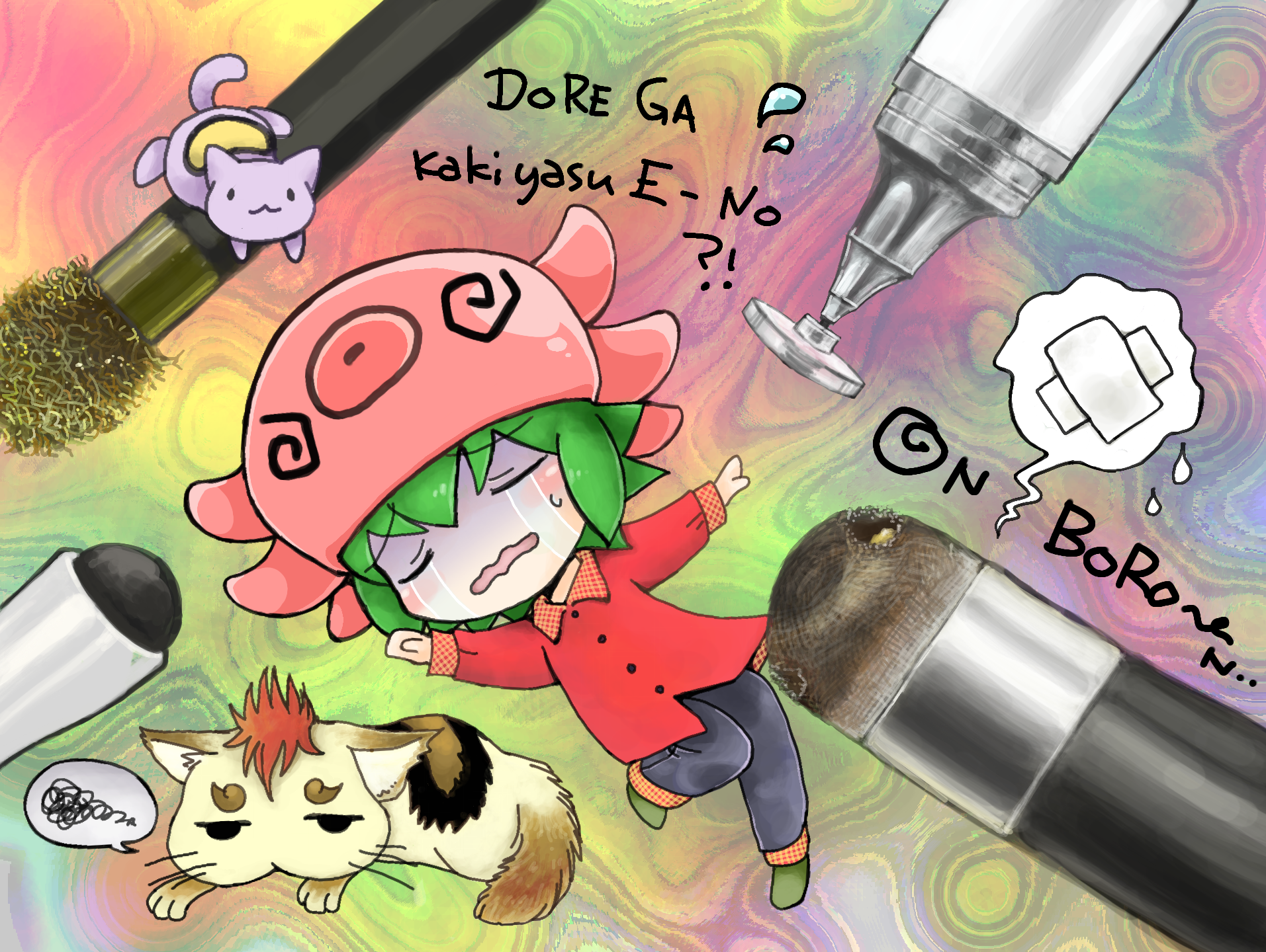 「う"ぅぇえ!!タコカゼヲ取り憑かれたぁあぁ!タコ帽い"ぃ"やぁぁ"あ"!ネコ帽子返せぇえ!猫帽ゲットバァーック!!」