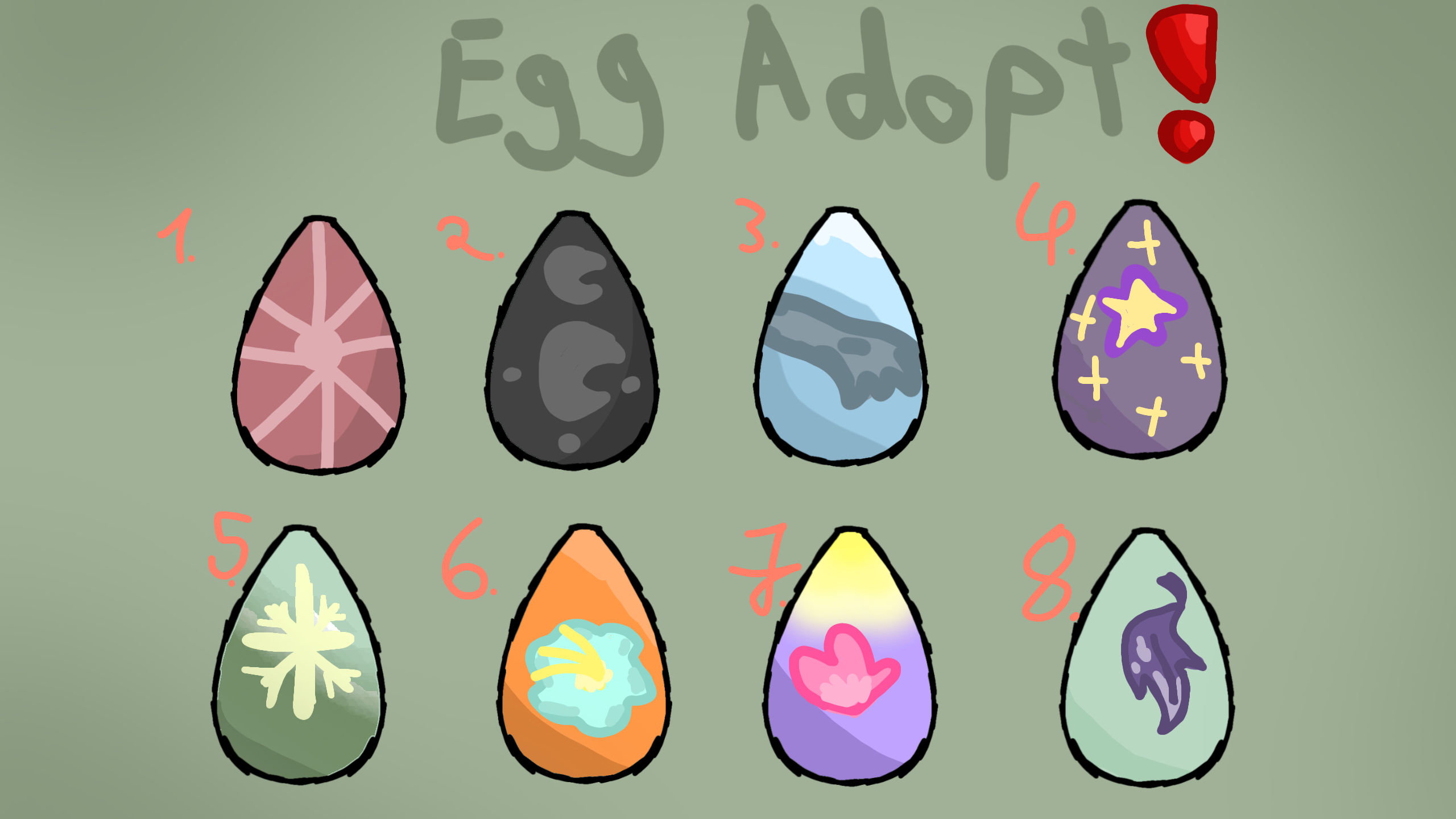 #EggAdopt1. @Sablarau_1002. @burgersandfries3. @Sh3_Wh0m_Dr4ws @FunnyBunnyFan @HannahWallbank @Blandine274. @Midnightberrie @THAT_SCRAPS-v-5. @Xxfurby-farmsxX @Mr_007n76. @animal_crossing1237. @Madl3n @lettiecat8. @_-LightDragon-_