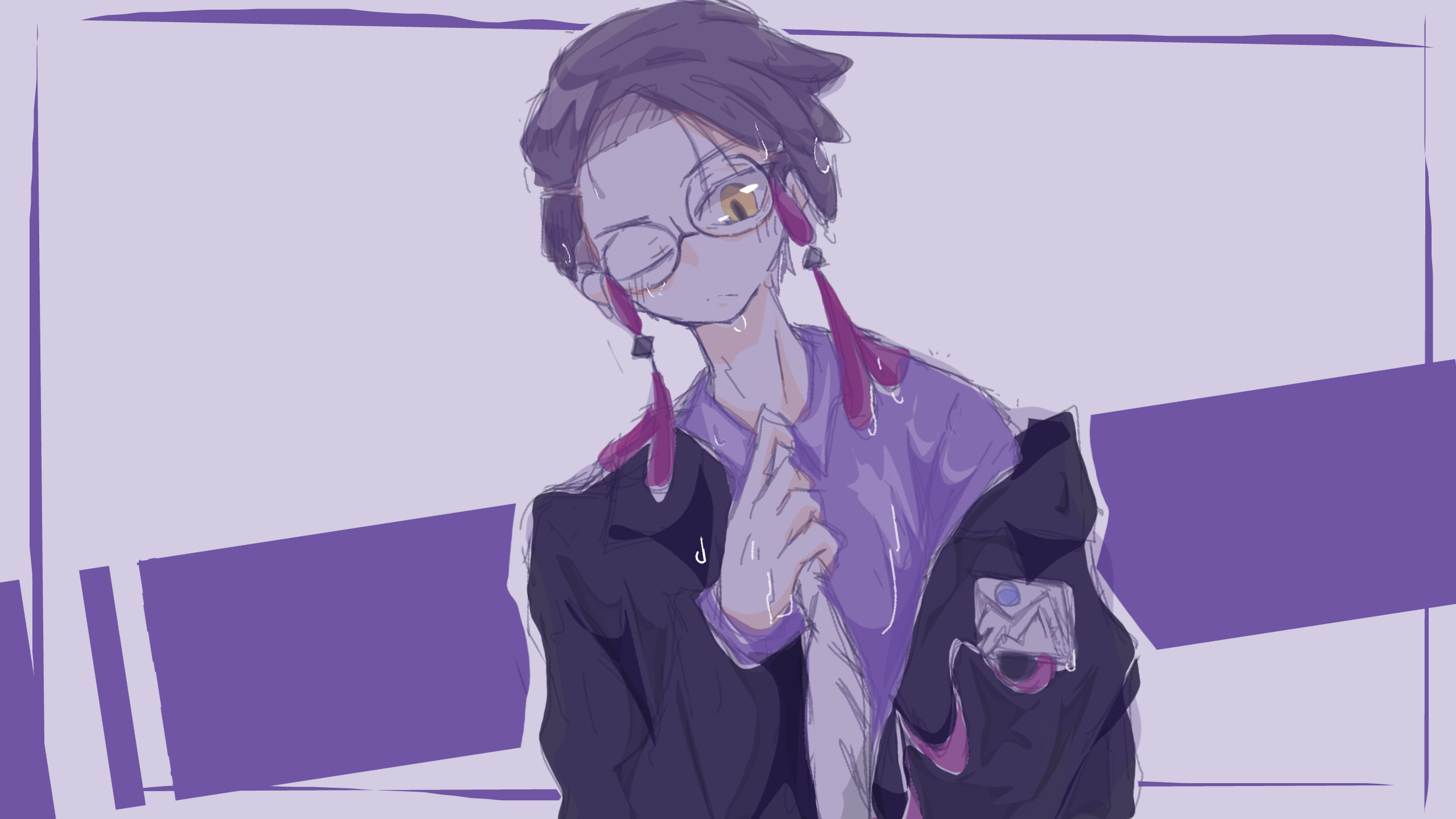 雨に降られたカラスバさん描きたかっただけ!!髪をセットする前とかメガネ外したらどんな感じなのかきになるー!!!
