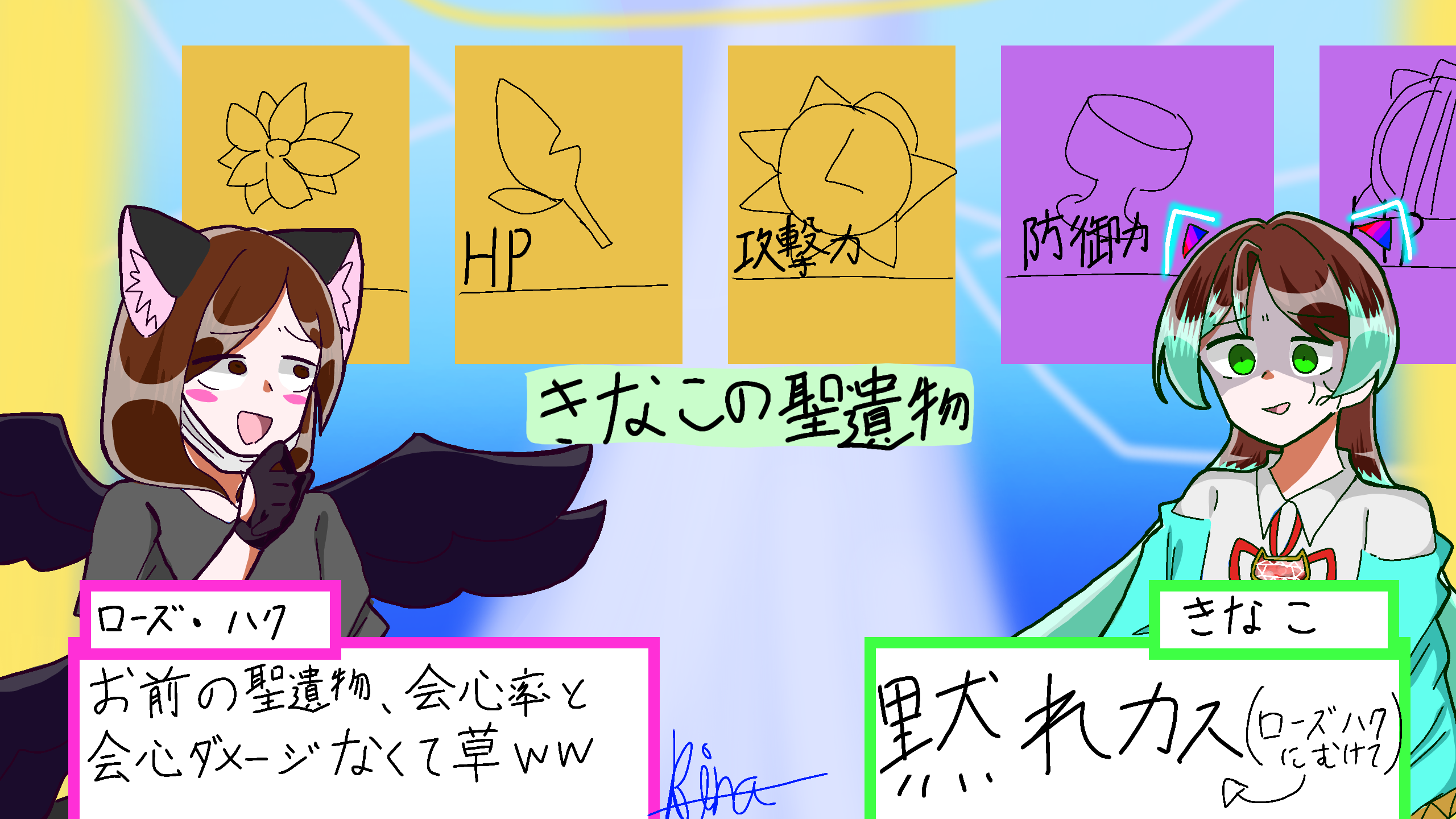 【原神】すっげぇ長く遊んでる友達ローズハクに許可もらったんで描きますわローズハクは無意識にあおってきますし普通にあおってます一緒にゲームするたびにマジで腹たちます(ω^^)ローズハクとは、暴言祭りですが喧嘩するほど仲良しなんで安心していっすよ(???) #きなこ餅イラスト #ハクきな
