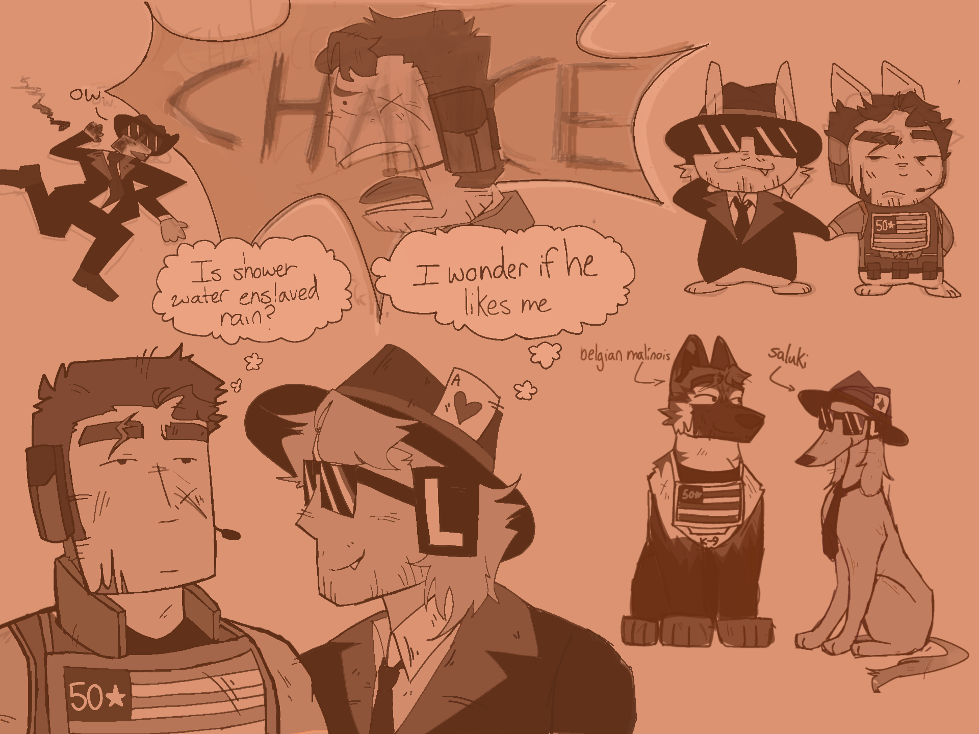 I'm probably gonna change up my dog design for Guest, I'm happy with the breed I have for him though, fits his character well (a certain war dog that got awarded a medal after I think WWII was a Belgian Malinois)