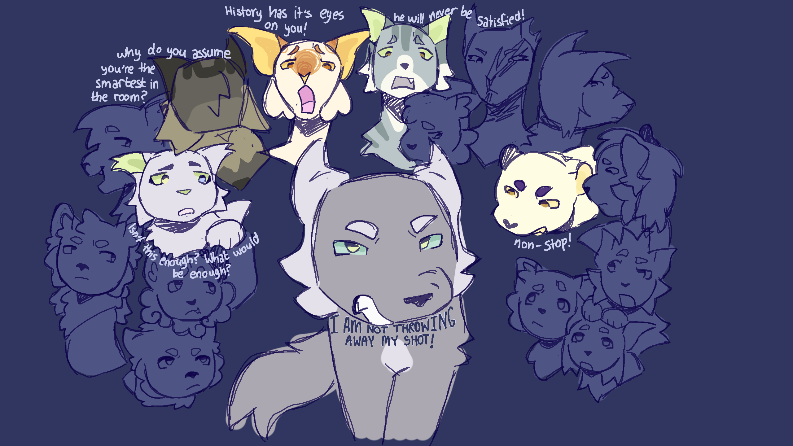 hamilton obsession got the better of me heres my ocs drawn to the ending of nonstop #warriorcats #warriors #warriorsoc #warriorcatsoc #clangen #hamilton