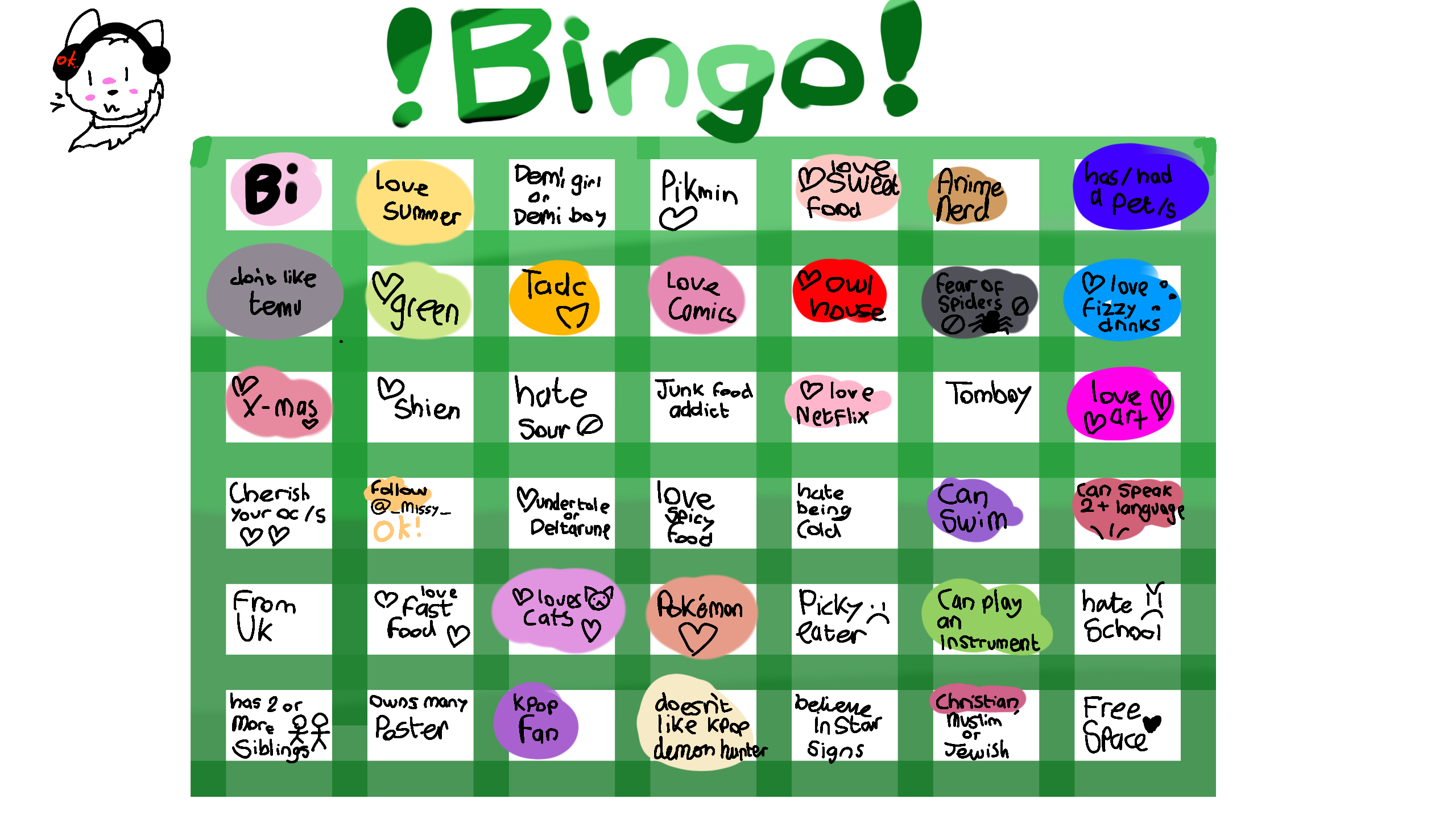 @_Missy_ :smile_cat: _______________________ @Wolfy8889 1. Pokemon horizons (oder einfach generell Pokemon) 2. White fox 3. Avatar 4. um ein Schnurrhaar 5. Dragon heart 6. Das wandelnde Schloss 7. Warior animals 8. In my dreams! 9. Bayblade X 10. Bayblade XZ Das wars :innocent: