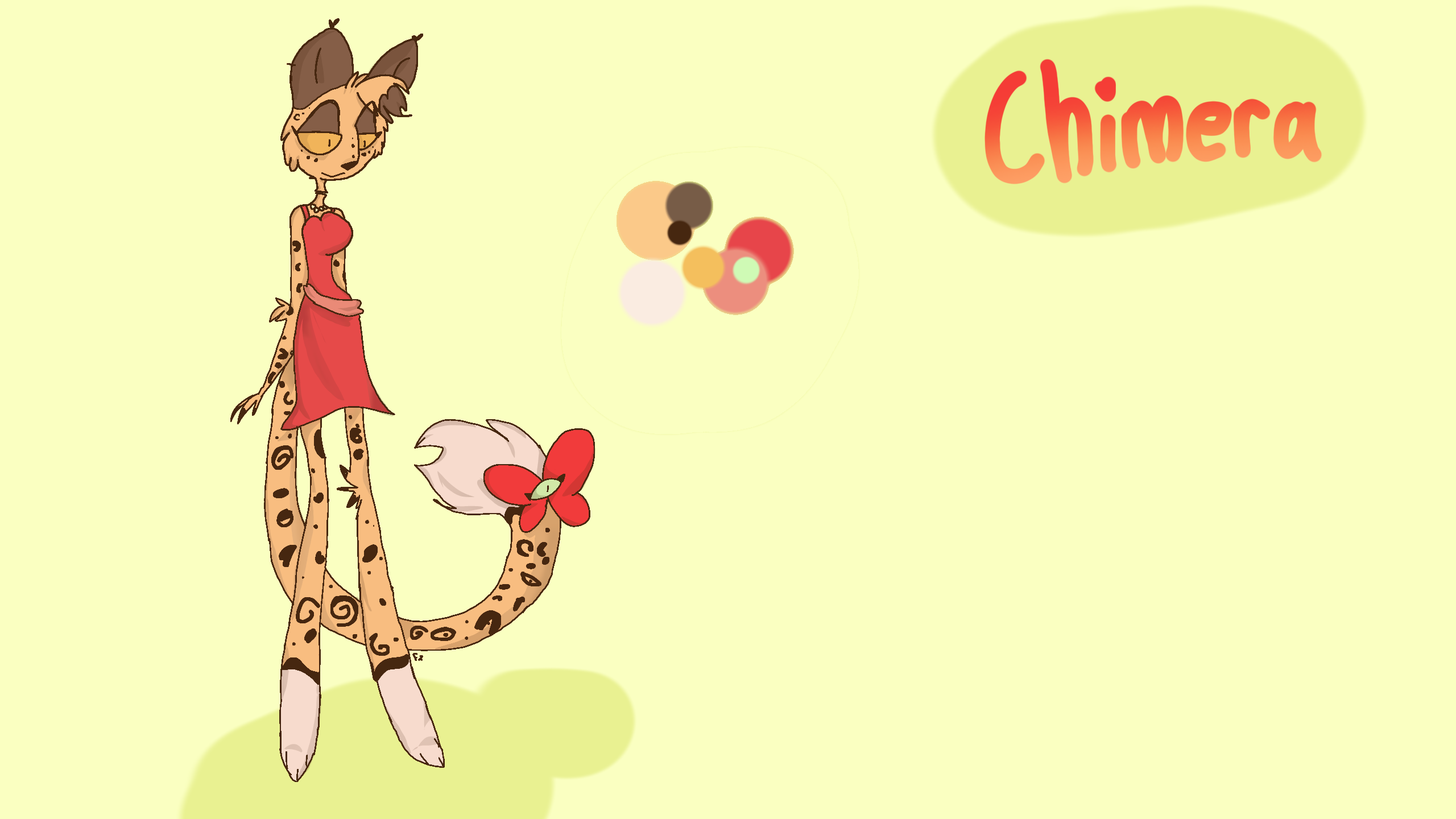 one of my ocs. she was originally a normal leopard/cheetah thing, but i changed it so i could give her a dress. dony copy