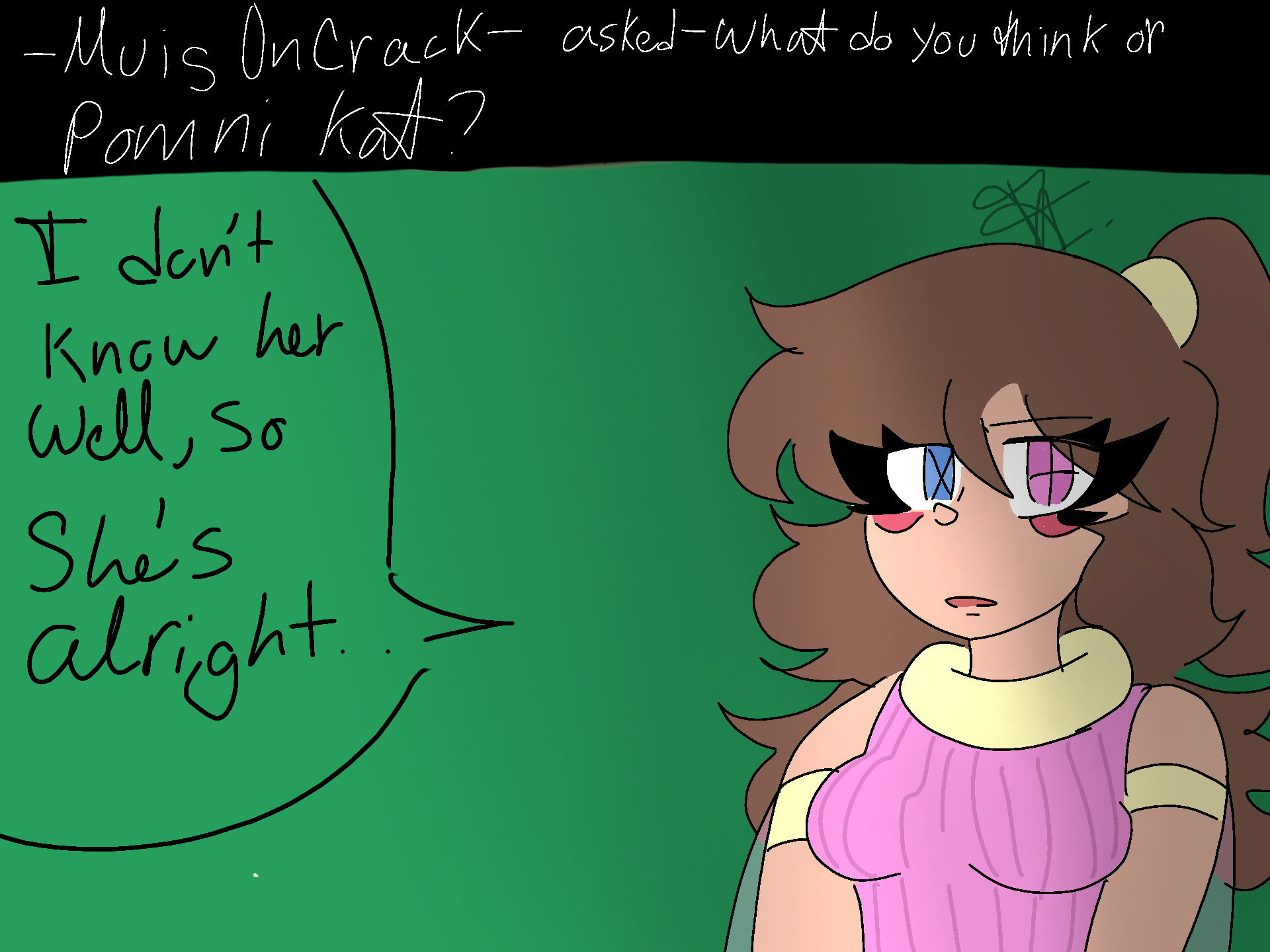 Q @-Muis0ncrack- asked, what do you think of pomni kat?AI don't know her well, so she's alright #AskCat #AskmyocKat