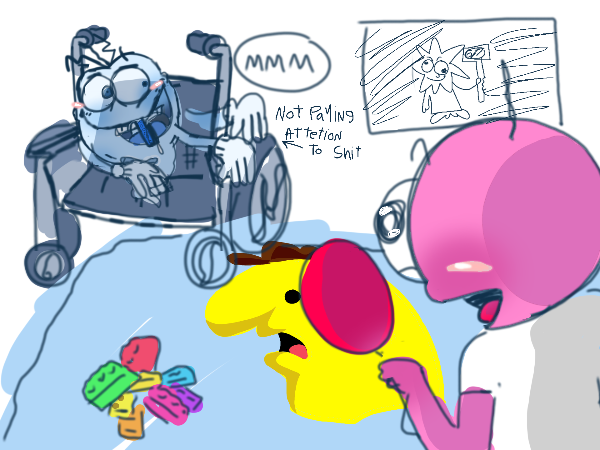 rip squim my dad wouldve liked you if only you werent a smiling friend.. i had to draw squim and that one kevin spencer thing by memory ok. #squim #kevinspencer #funny #smilingfriends #soraai #canon #yo