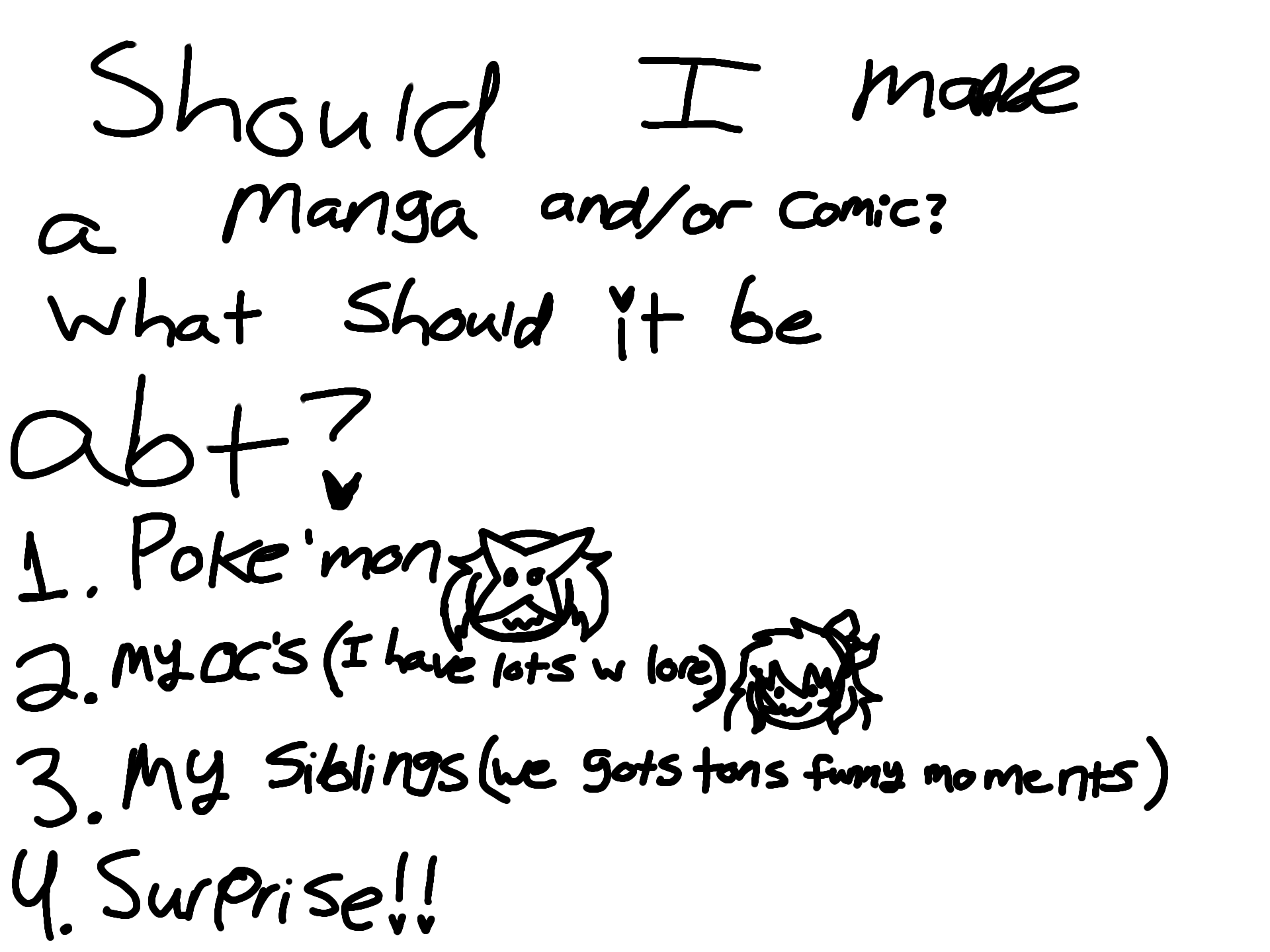 Should i make a comic or like manga syled trype shiz?? if so what should it be abt? choose pls! XP1:2: //34:fyi: my hand writting sucks soooo yuh